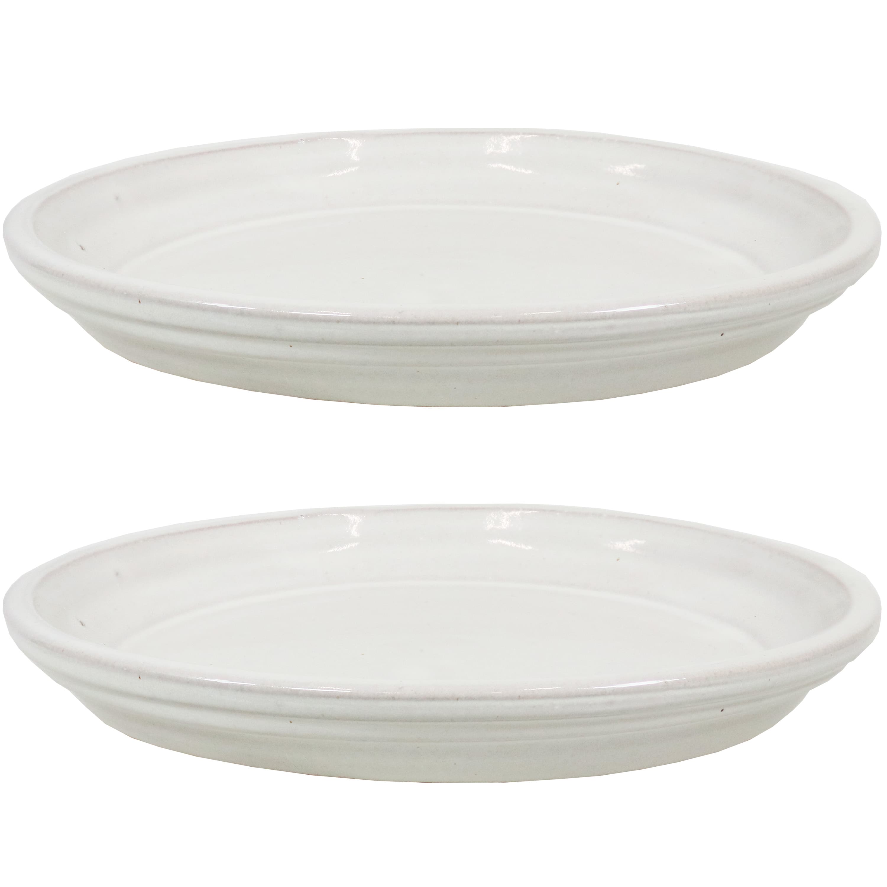 Sunnydaze Decor Glazed Ceramic Planter Saucers - 9 - Pearl - Set of 2