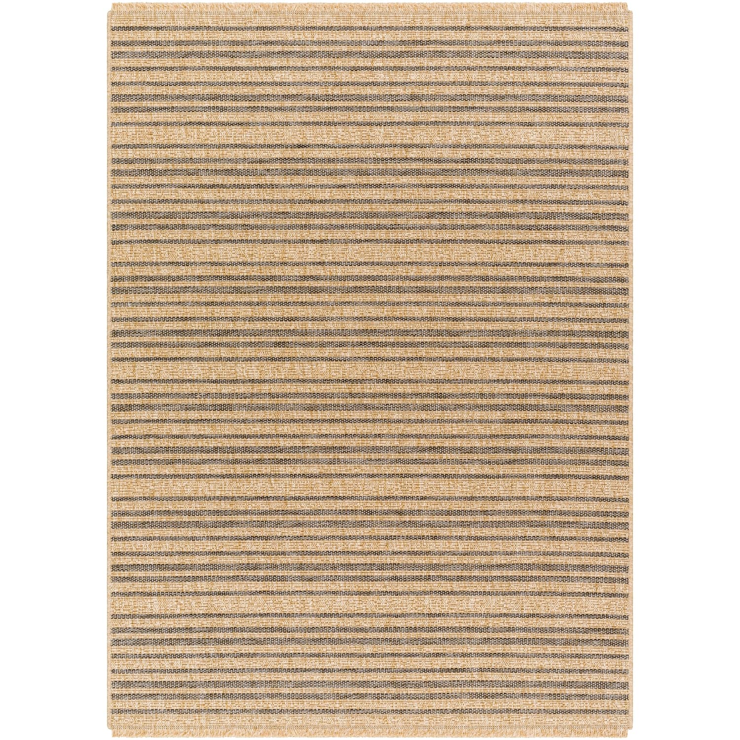 The Mirage rug collection combines a rustic farmhouse look with modern practicality. Machine-woven in Turkey from durable polypropylene, this area rug is perfect for high-traffic zones and outdoor areas. Its no-pile design ensures it's easy to maintain; just hose it off when required. The fringe adds a touch of style, and for optimal positioning, a rug pad is recommended to keep it securely in place. Rug Size: 4' x 6'. Pattern: Striped.