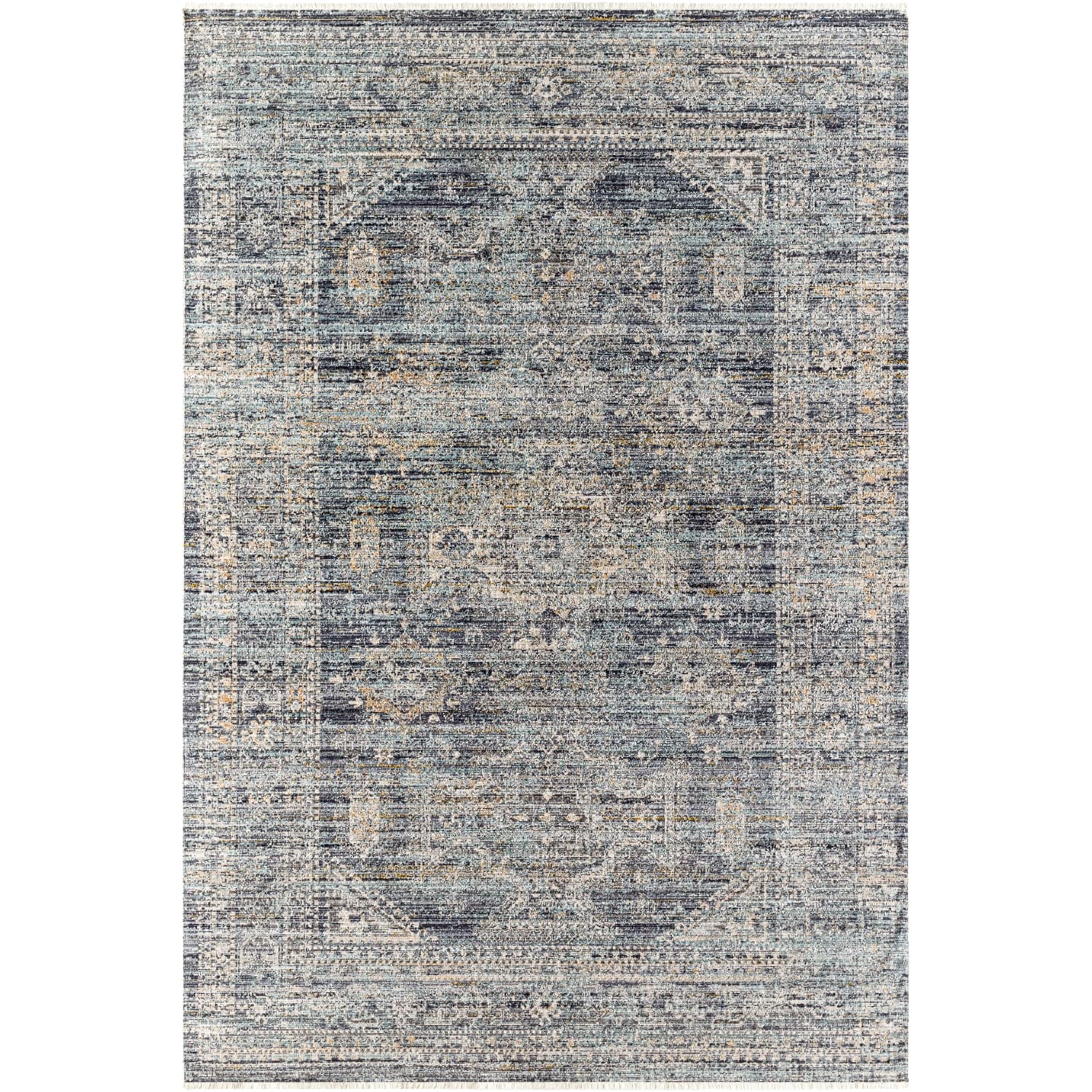 Enhance your home with the elegance of the Margaret area rug. Crafted from machine-woven polyester, this rug exhibits a refined design suitable for various styles, from traditional to modern. Fringe accents provide added flair, and its no pile construction suits high-traffic areas. It's suitable for outdoor use and easy to maintain—simply rinse with water and allow to air dry. A rug pad is recommended (not included) to ensure the rug stays put and protect its underside. Featuring a striking pattern with a classic aesthetic, the Margaret area rug is designed for long-lasting appeal.