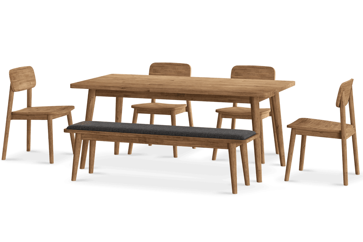 Seb Dining Table Set, 71" with 4 Wooden Chairs and 51.2" Bench