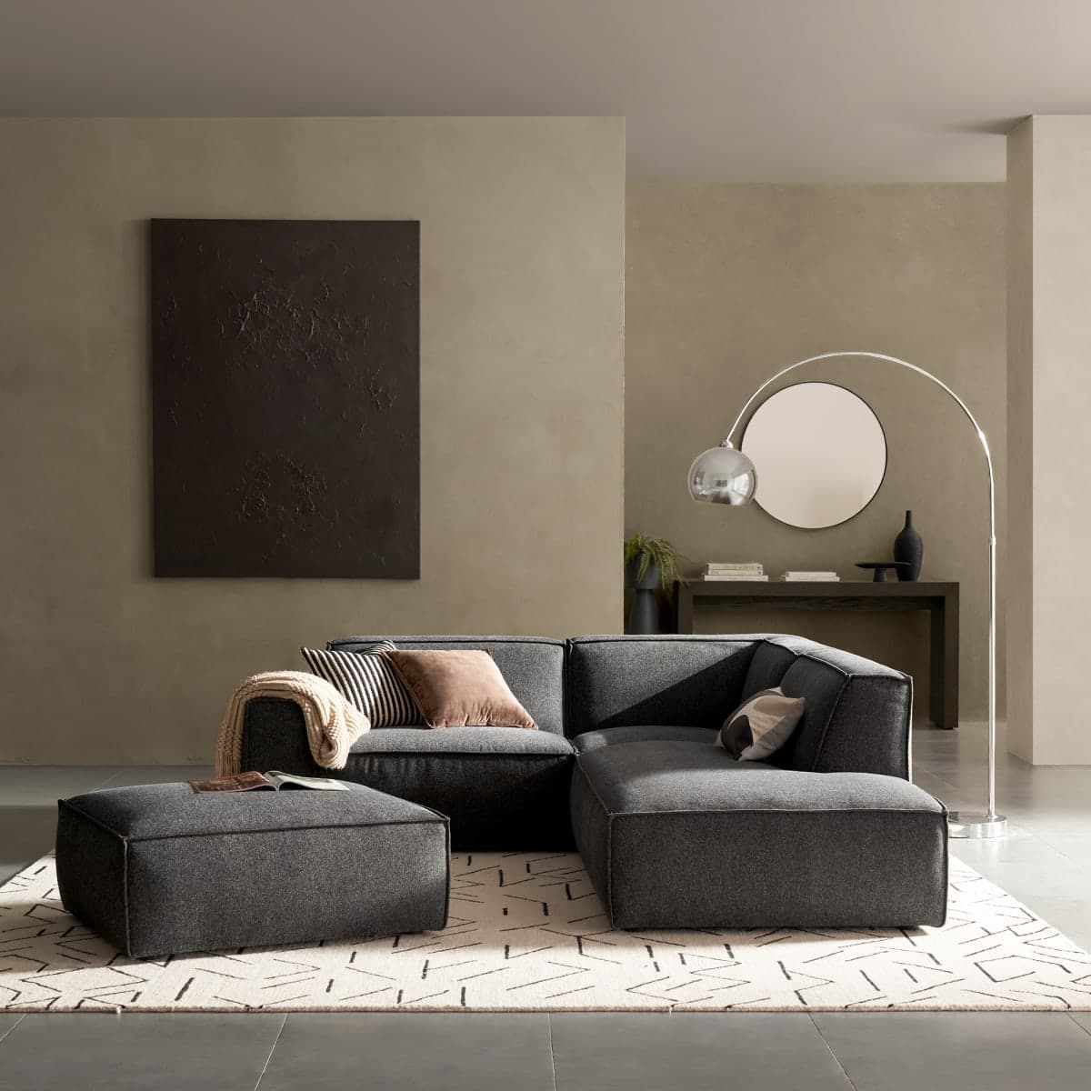 Dark Gray Right Side Chaise Sectional Sofa by Castlery, Black Color