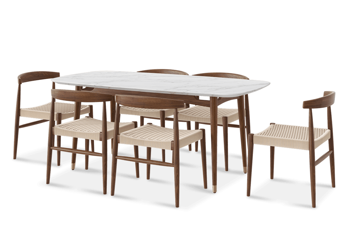 Kelsey Marble Dining Table 71" and 6 Austen Chairs, Walnut