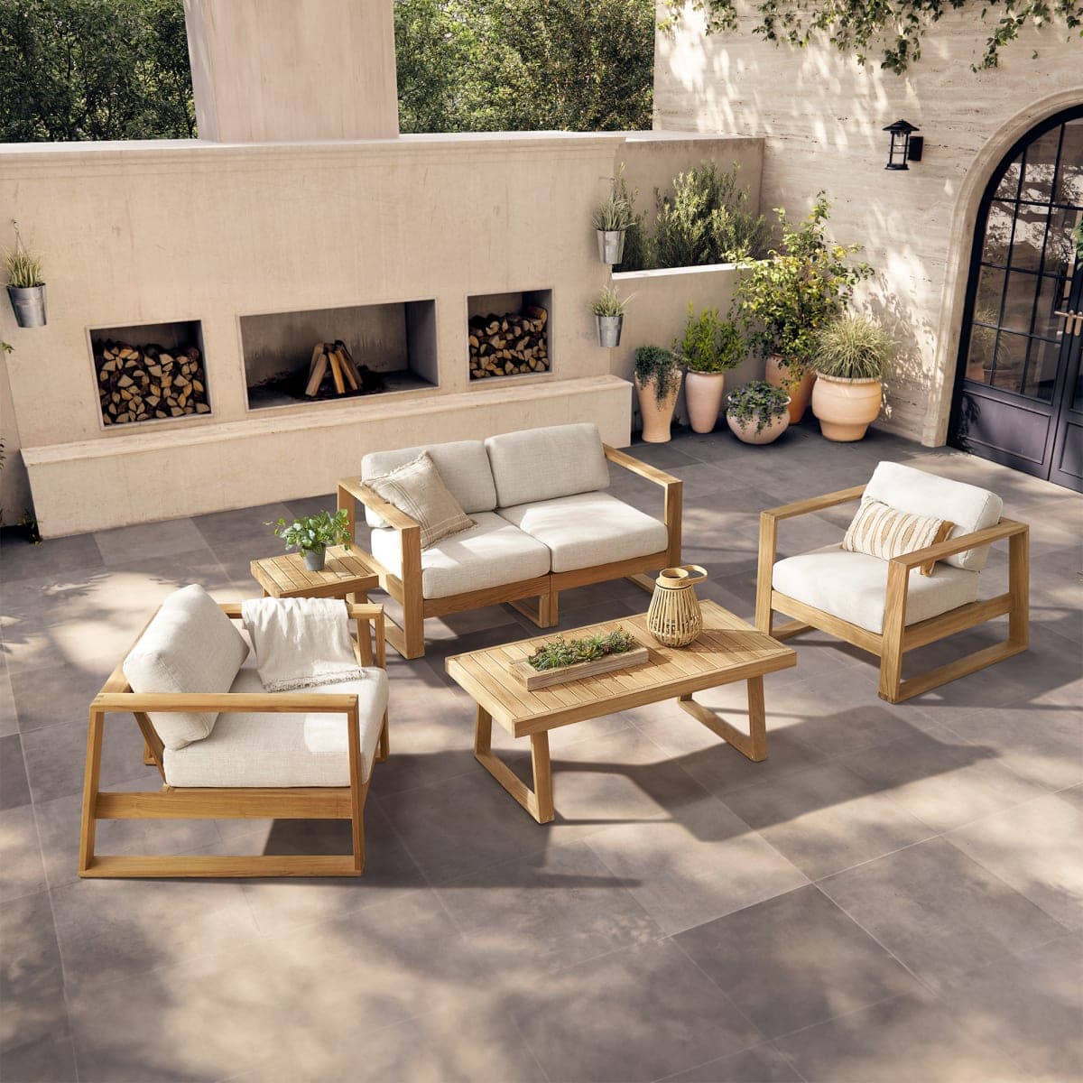 Beige Outdoor Teak 2 Seater Sofa | Rio by Castlery - Water-Repellent Fabric - Durable Frame