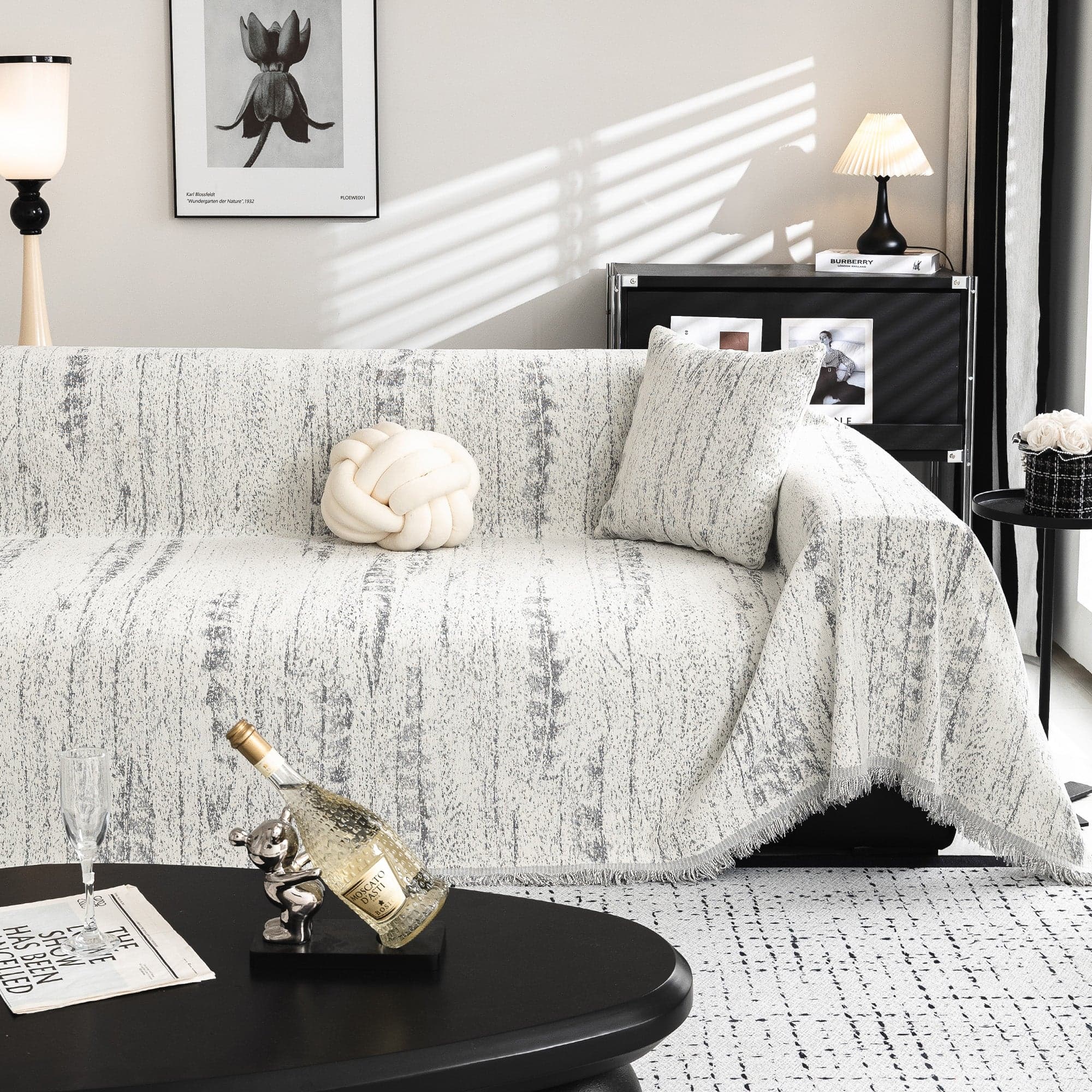Enhance your sofa's look with the Slashop Contemporary Canvas Sofa Cover in an Oyster Shell shade.