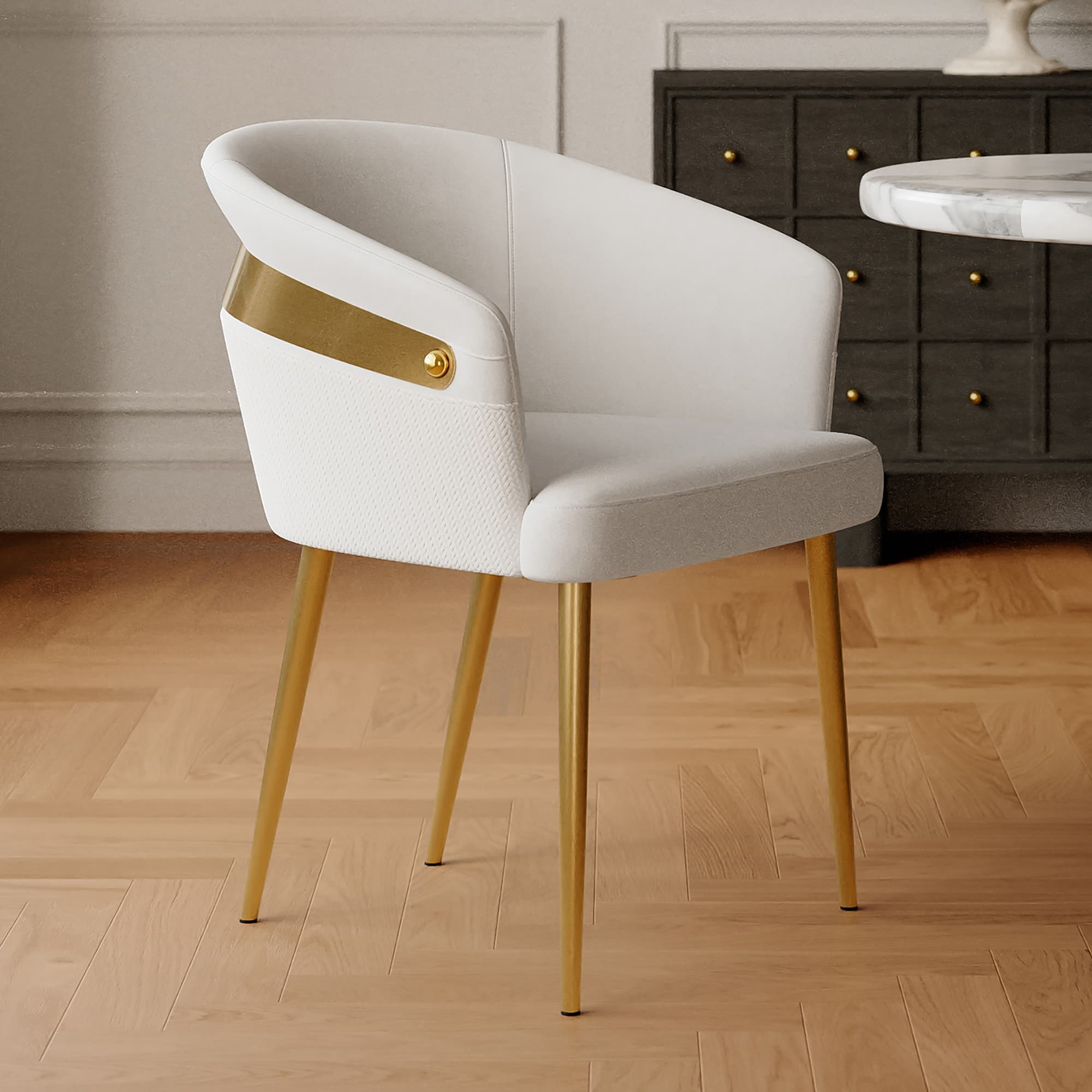 Modern White PU Leather Dining Chair Curved Back with Gold Legs