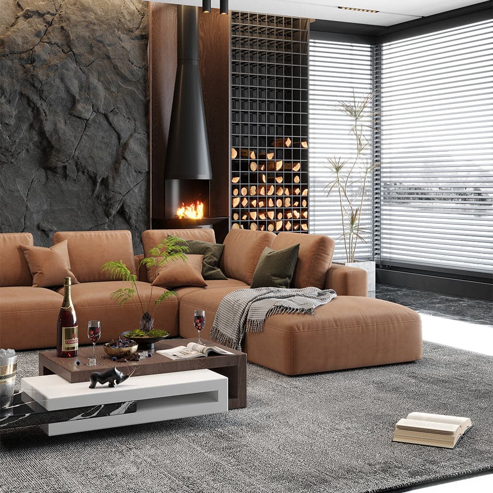 The Salo Antique Industrial Sectional combines softness and sturdiness. Its solid pine frame and stylish silhouette bring a fashionable touch to your living room. Covered in air-leather upholstery, it creates a comfortable atmosphere that fits any decor style. Sponge padding and a feather backrest add extra comfort for relaxation. This sofa showcases its beauty through an antique industrial design, ideal for those who prefer a unique home aesthetic.