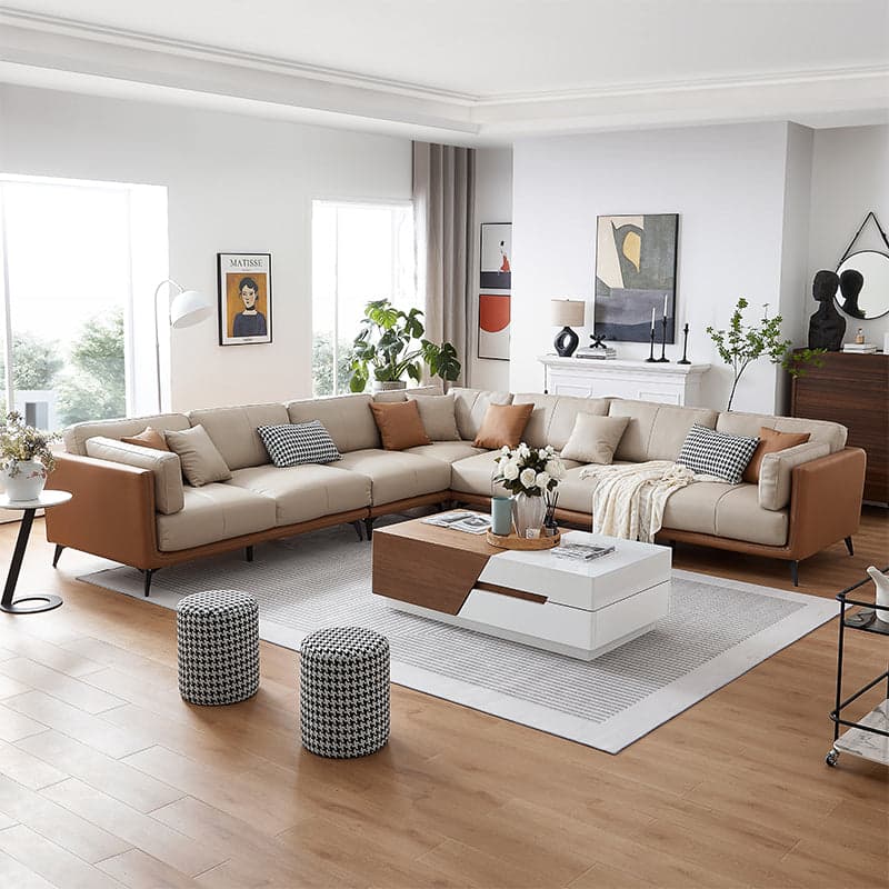 Never worry about the price of a genuine leather corner sectional again with 25Home. Our sectional offers a stylish, high-quality sofa at an accessible price without compromising quality. Designed with the best materials, comfort meets sophistication. At 25Home, we believe furniture should be affordable without cutting corners. Typically, the high cost of luxury is due to the middleman. 25Home eliminates retailers, passing savings directly to customers. Our direct-from-manufacturer model surpasses standard DTC brands by truly connecting customers to manufacturers. We select high-quality genuine leather, tested for durability to ensure it withstands wear, perfect for homes with pets and children. The leather is breathable and pliable, offering supreme comfort. We've applied waterproofing to the leather's surface, preventing sagging or deformation from moisture, and simplifying cleanup with just a rag.
