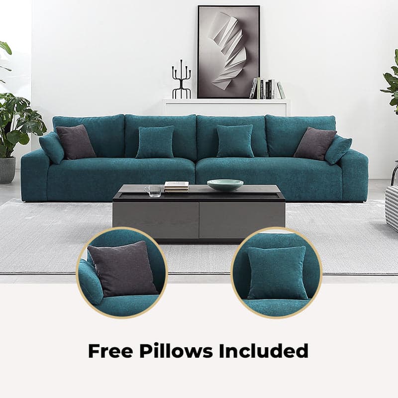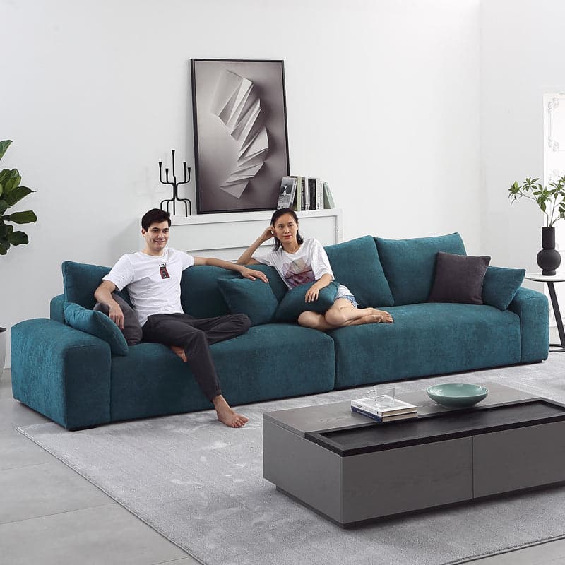 The Salo Wide Armrest Box Sofa combines soft and solid elements. A solid wood frame and chic silhouette make it a stylish addition to any living room. Foam and feather padding in the backrest enhance comfort for relaxation. Wrapped in polyester upholstery, this modern couch offers a comfortable atmosphere with a modern design flair. Placed in the living room or lounge, its unique jade color and minimalist silhouette make it a standout piece. Ideal for those who appreciate unique and aesthetic home decor.