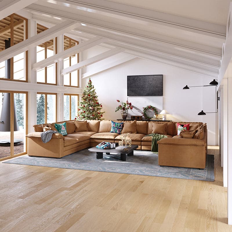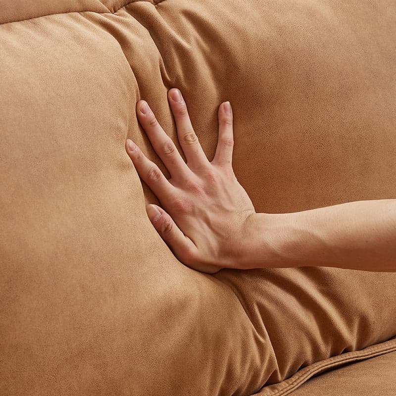 Resolve family quarrels over sofa choice with the Sandwich U-shaped Sectional, which adapts to differing preferences, from soft to firm. Each person can find their ideal comfort with customizable cushion combinations, promoting creativity and family harmony. The sectional is comparable to a sandwich, where you can select your desired configurations for a unique comfort experience. Featuring two cushions per seat, a soft feather and a bouncy foam option, it offers four different sofas in one, suitable for diverse spaces while giving four types of enjoyment. With its 32.7-inch seat depth, the sectional doubles as a single bed, with armrests that serve as ergonomic pillows that support your spine. Water-resistant air leather ensures easy cleaning and prevents sagging or deformation. Its strong material is durable against scratches and perfect for households with children or pets, remaining wrinkle-free and resistant to pilling. Vegan leather offers an eco-friendly, easy-maintainable alternative, with reduced allergy potential compared to genuine leather. Linen provides breathability and resistance to water and stains, while ethically sourced genuine leather enhances natural ventilation. Fluffy feather cushions can be re-shaped through simple patting, using high-quality, bleach-free natural down filling that is odor-free and allergen-friendly, ensuring worry-free relaxation on a comfortable down cushion.