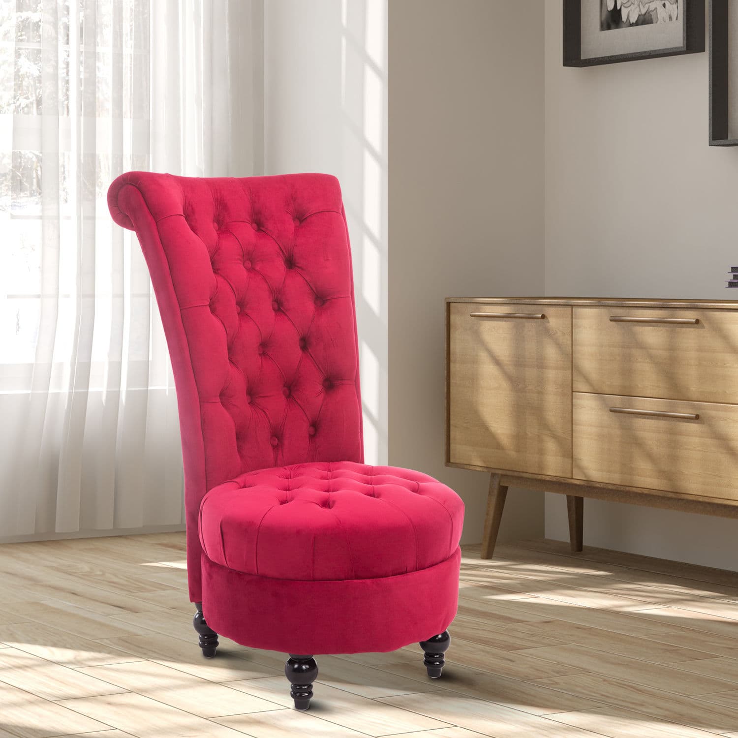 Enhance your living space with a royal high back tufted chair from HOMCOM. Its unique take on the classic chesterfield design makes it an elegant accent piece. Enjoy hours of comfort with soft, thick padded cushions, while the colorful upholstery ensures it stands out beautifully. Add a touch of fashion to your space with this distinctive high back chair from HOMCOM.