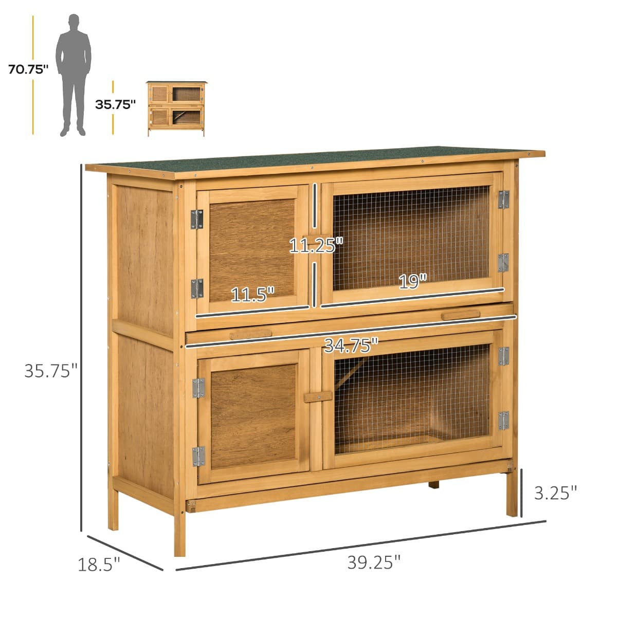 PawHut Bunny Hutch Rabbit Hutch Indoor, Small Animals Habitat with Ramp, Removable Tray and Weatherproof Roof, Yellow