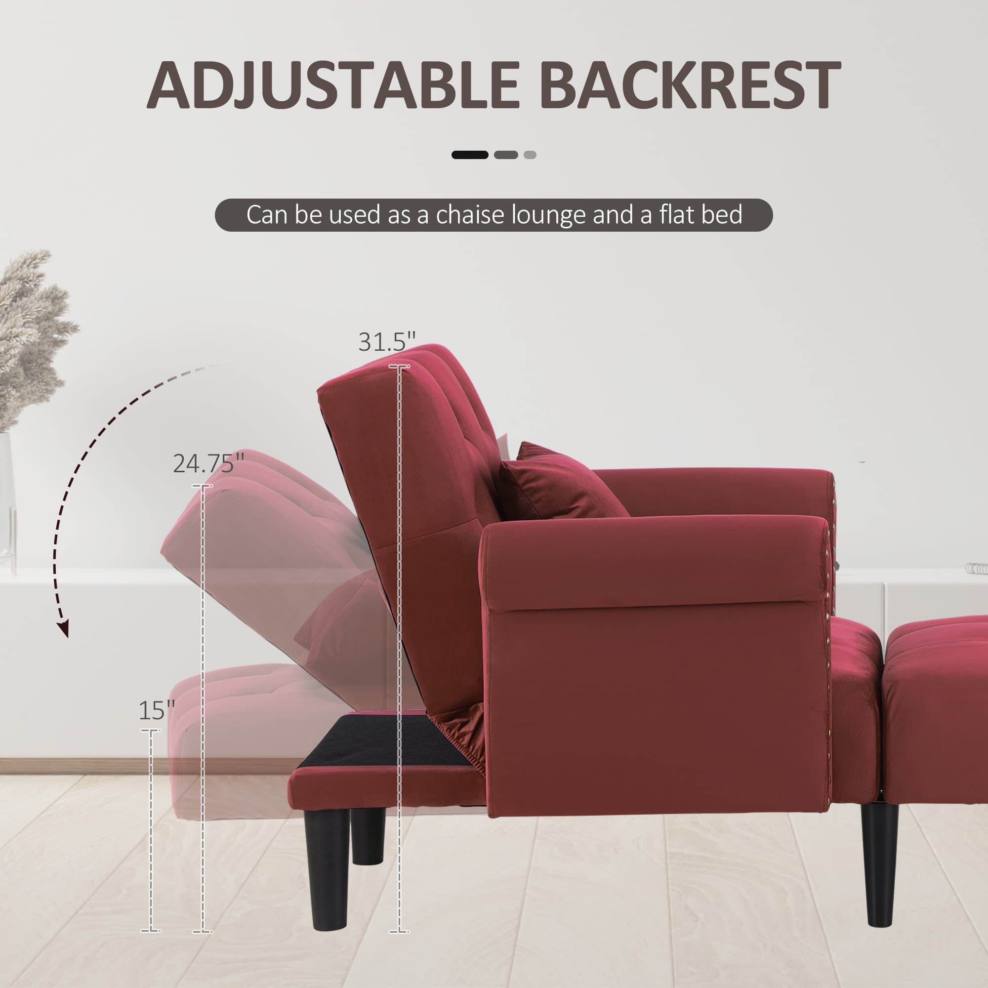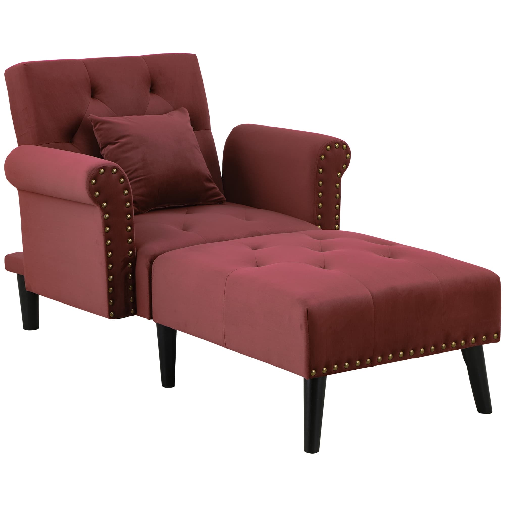 HOMCOM 2-In-1 Chaise Lounge Chair Indoor with Rolled Armrest, Nailhead Trim and Button Tufting, Adjustable Chaise Lounge Sofa for Living Room, Red
