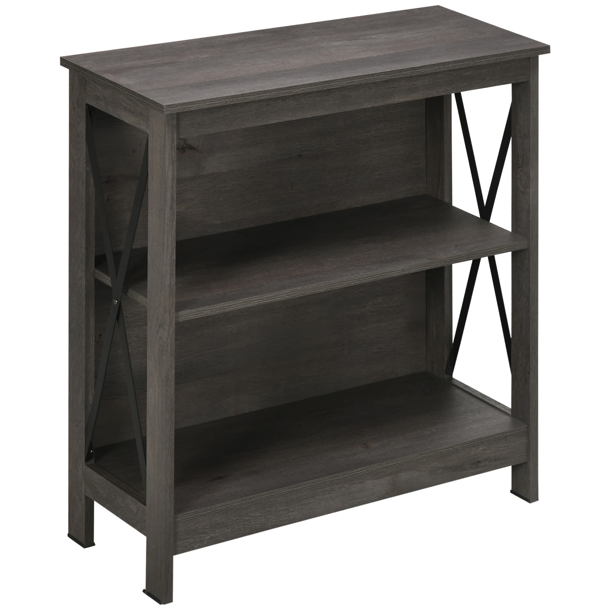 HOMCOM Industrial Style 2-Tier Bookcase Bookshelf Open Shelving Display Storage Unite with Metal X-Bar for Living Room Dining Room Study Office Dark