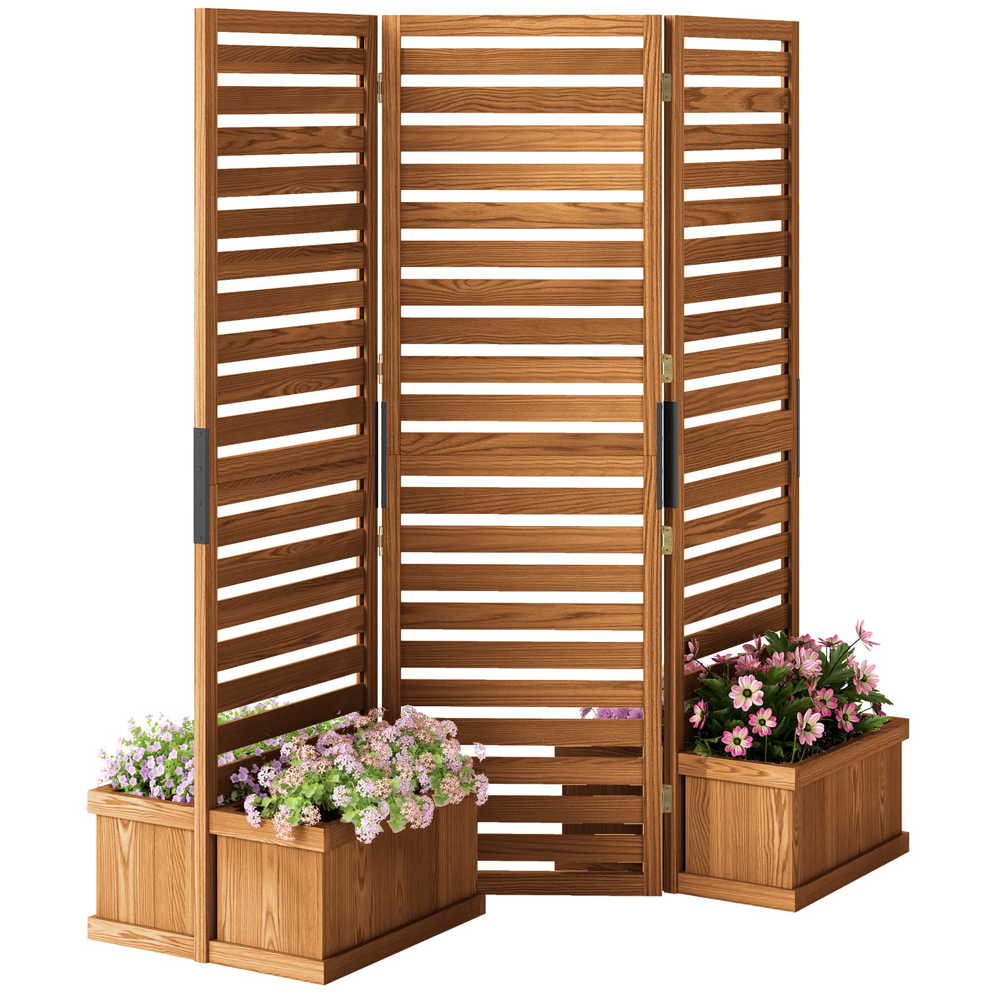 Opt for backyard privacy without a fence using Outsunny's planter screen. It includes a freestanding privacy screen supported by four planters at each corner for stability. While other screens might leave you pondering weight options, this screen gives room to grow veggies, herbs, or flowers, and you can paint it to match your patio setup. With three folding panels, it's excellent for creating entryways, secluded sitting areas, or masking hot tubs.