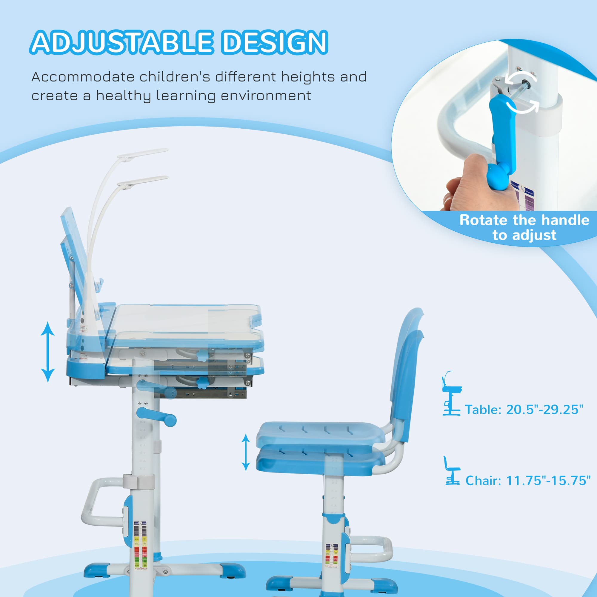 Qaba Adjustable Kids Desk & Chair Set with LED Lamp, Tilt Desktop, Reading Board, Cup Holder, Pen Storage for Homework & Crafts | Aosom.com