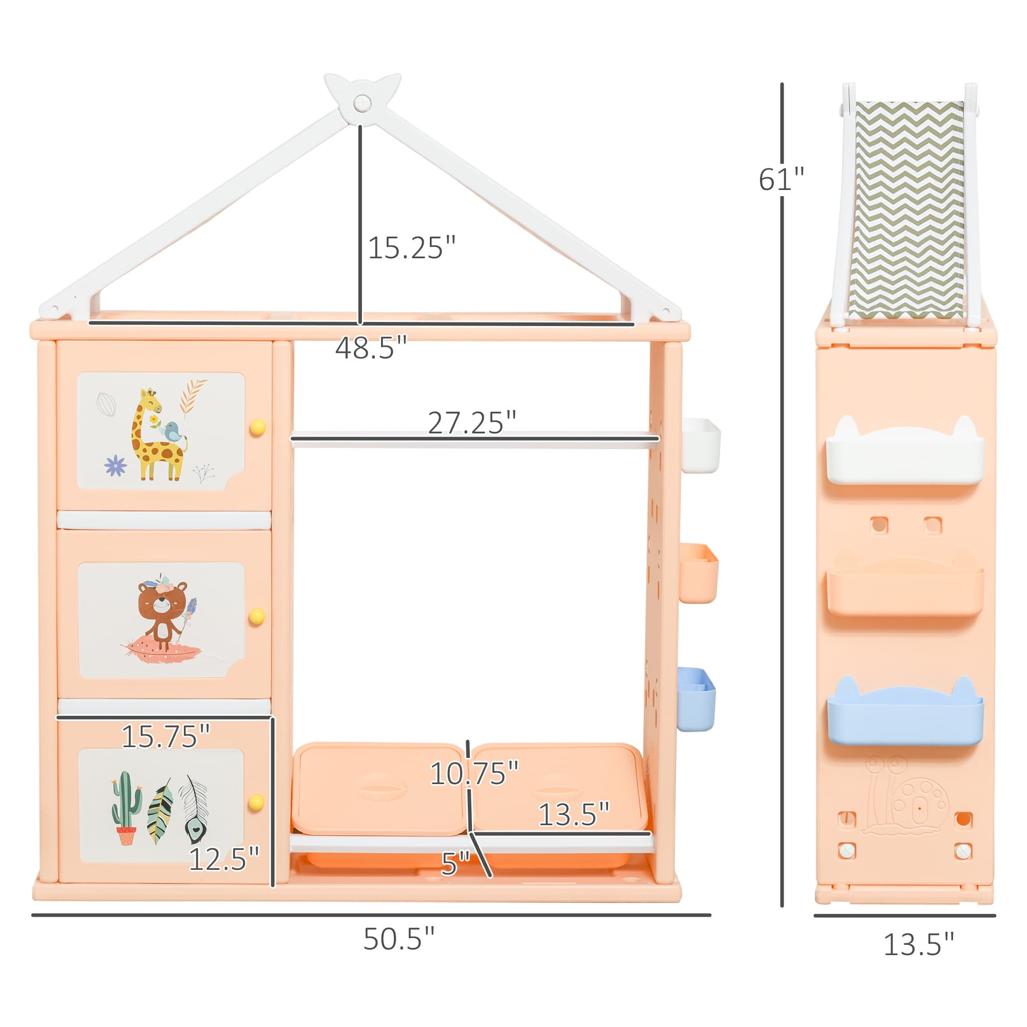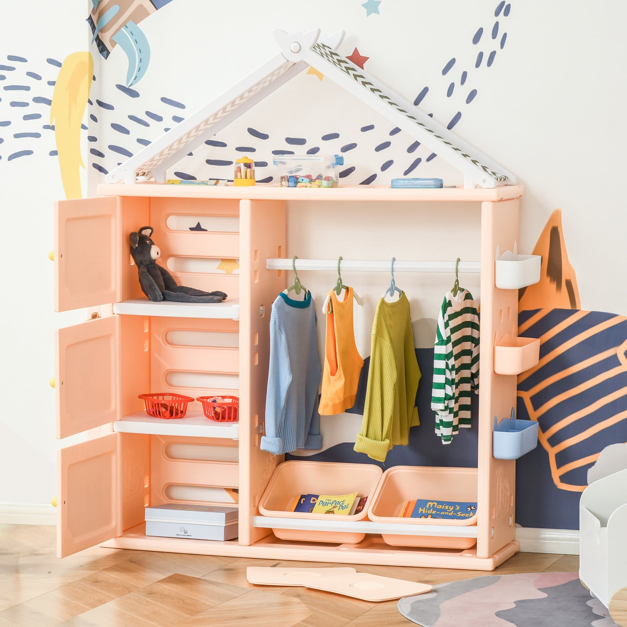 Qaba Orange Toy Organizer and Storage Solution Complete Book Shelf with Cabinet Hanger Box and Basket Optimal Kids Room Storage | Aosom.com