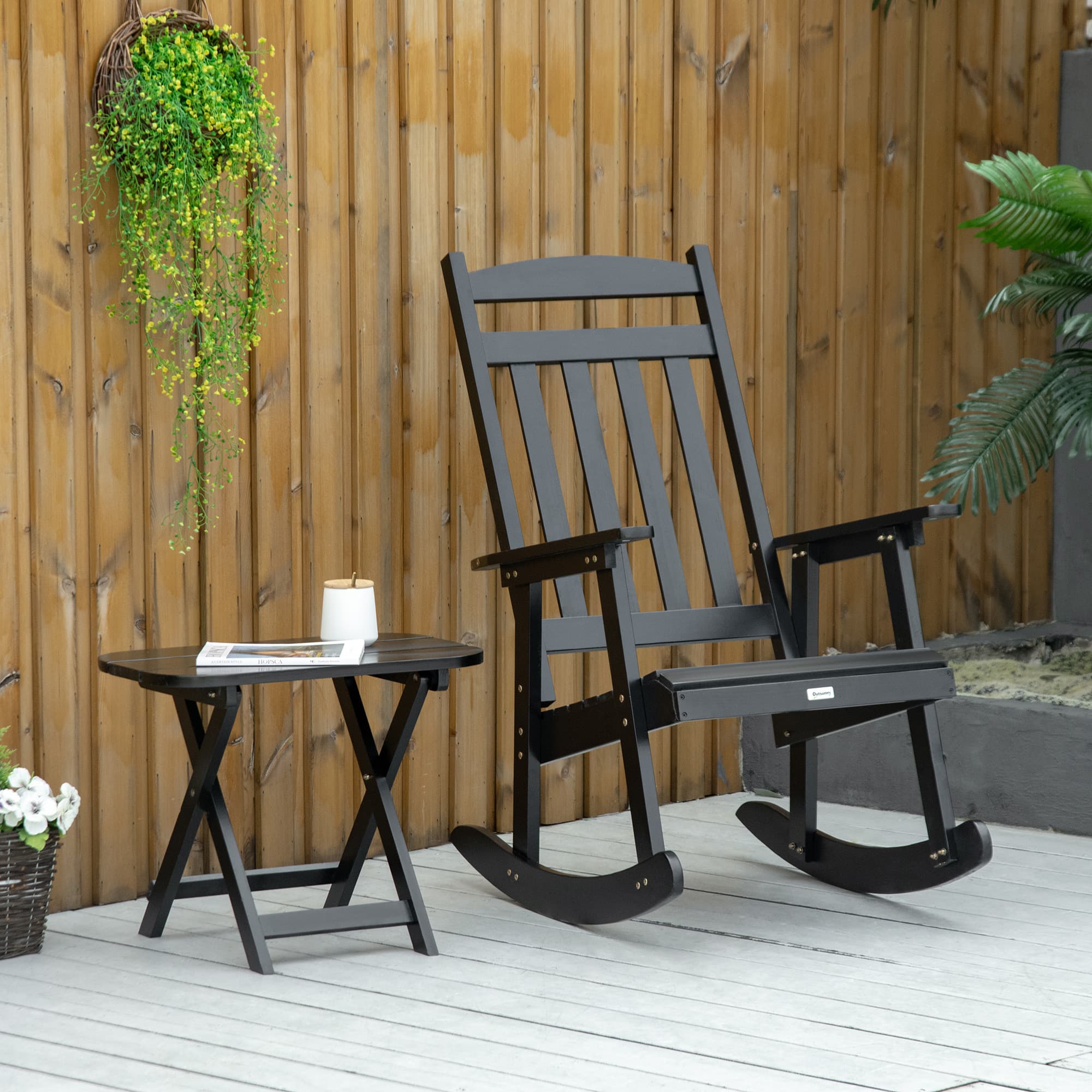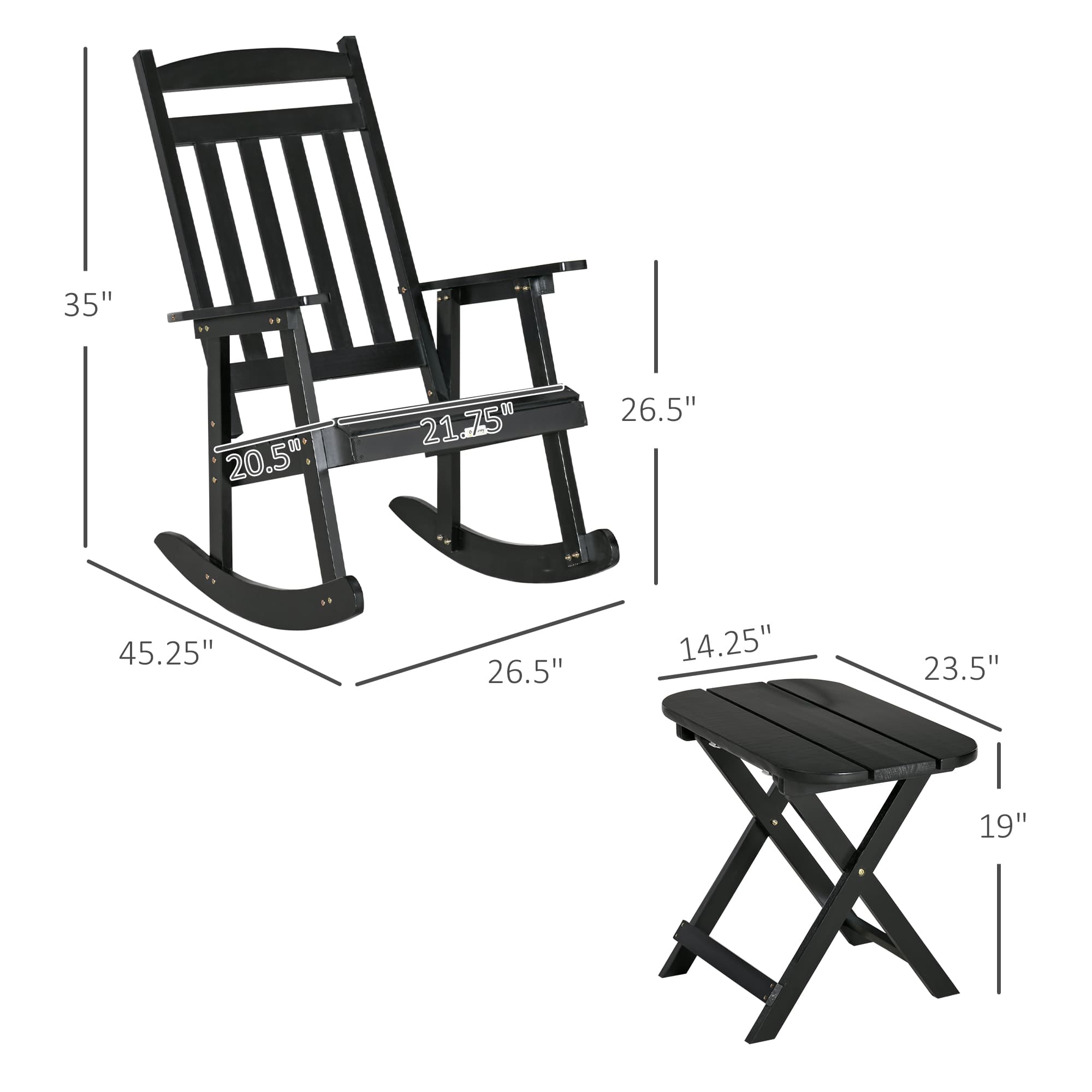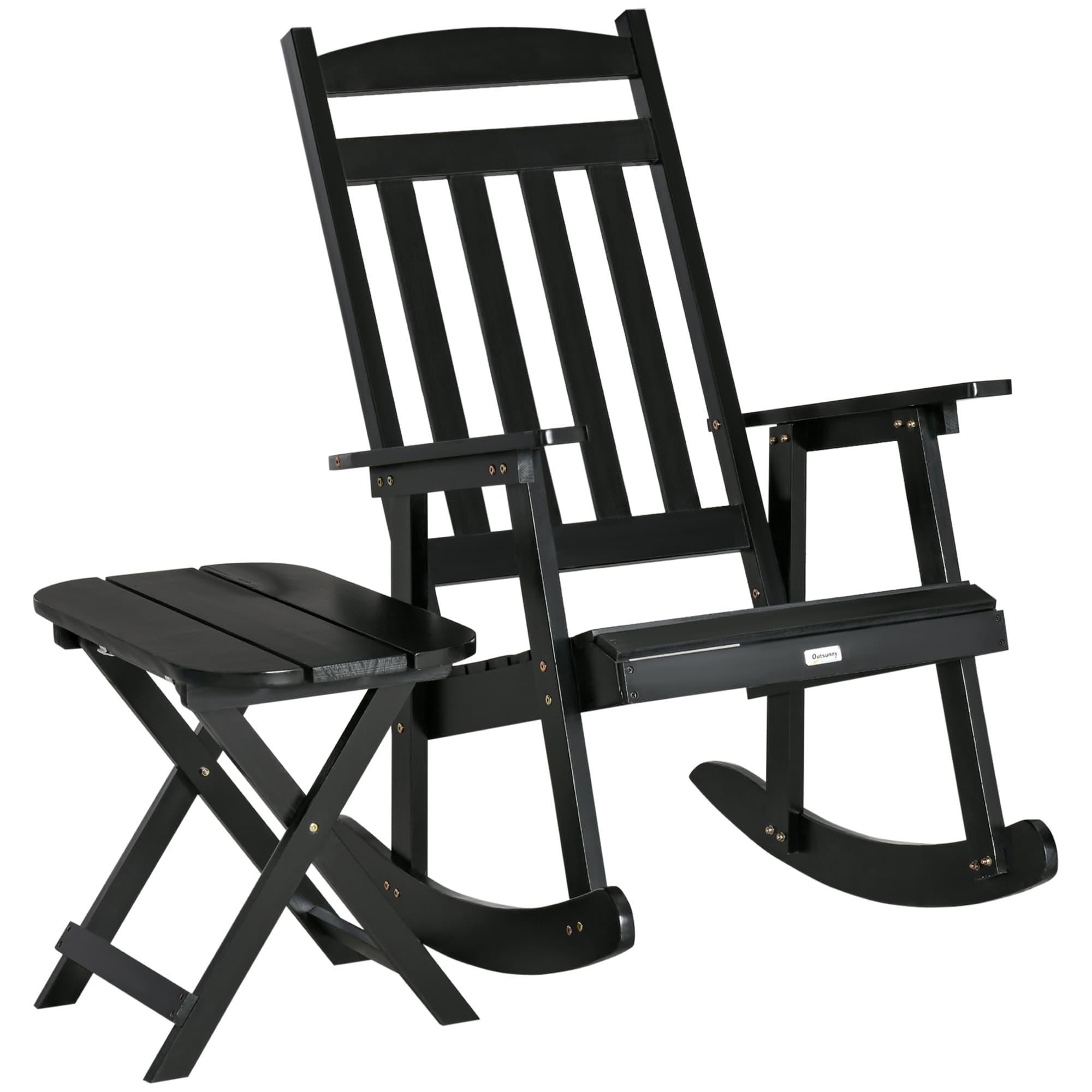 Outsunny Porch Serenity Set: 2-Piece Black Wooden Rocking Chairs with Foldable Table | Aosom.com