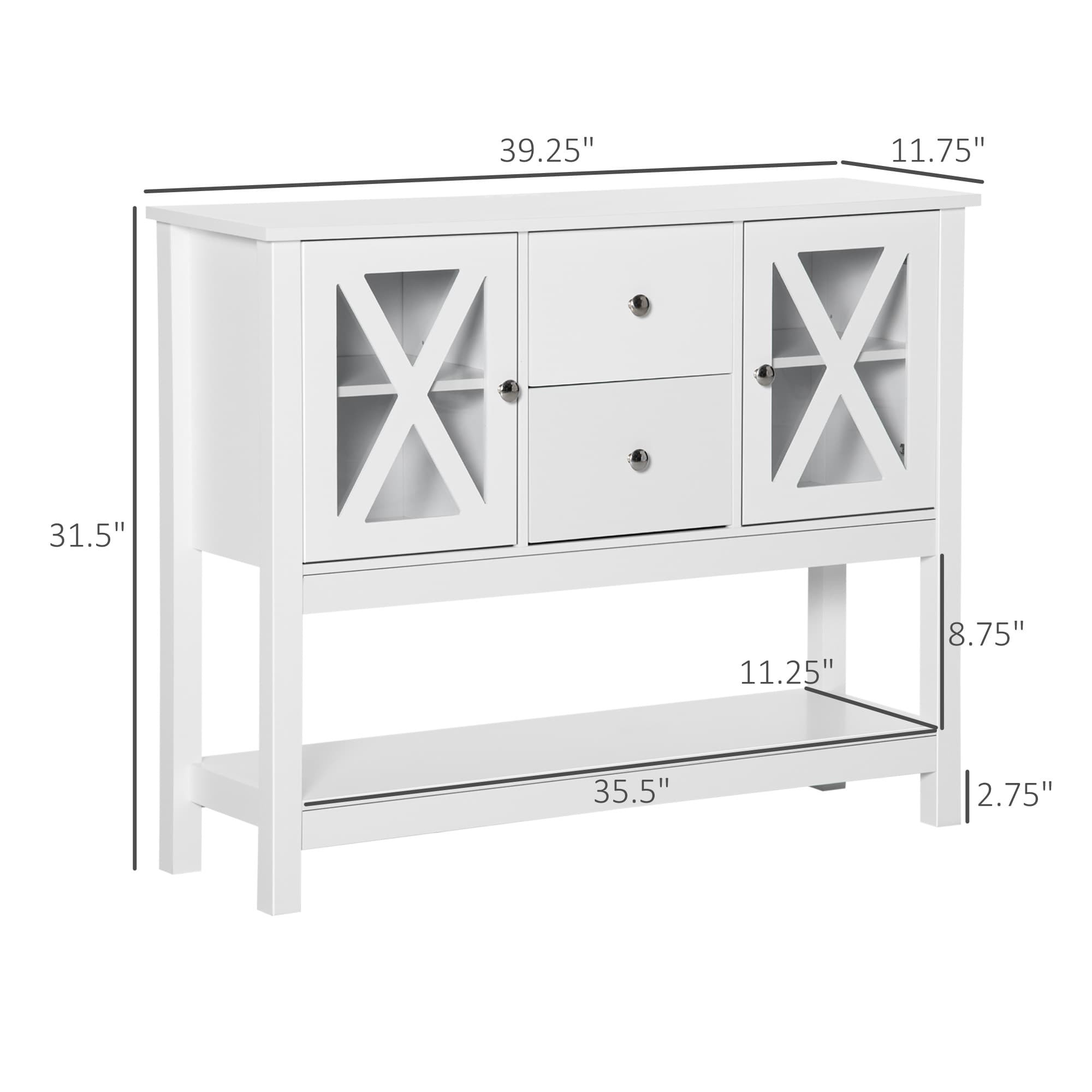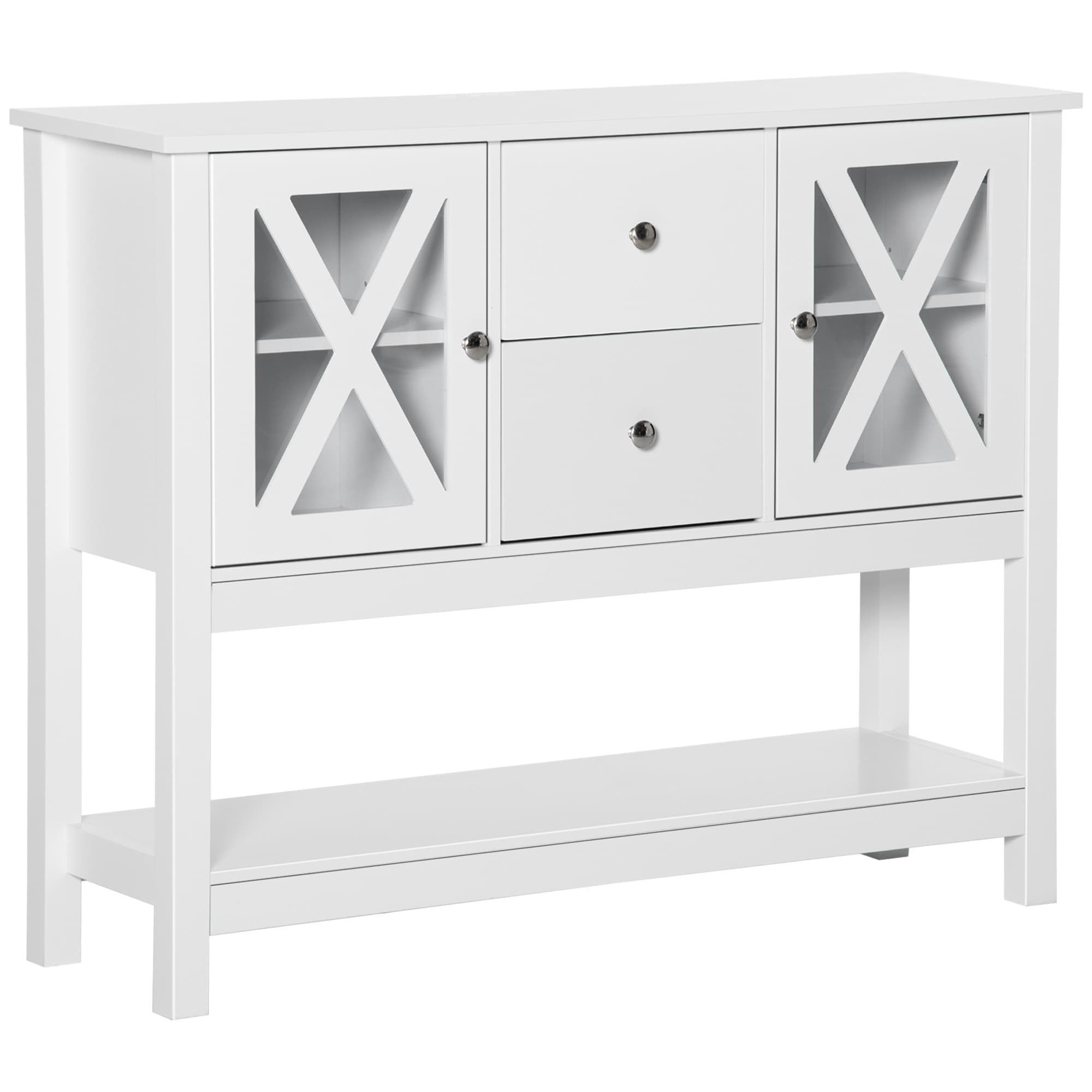 Add essential storage to your home and achieve organization with this HOMCOM sideboard. The bold x-shaped front doors add character. Featuring two drawers and two cabinets, it offers diverse storage options. Adjust the interior shelf to customize your space according to your needs.