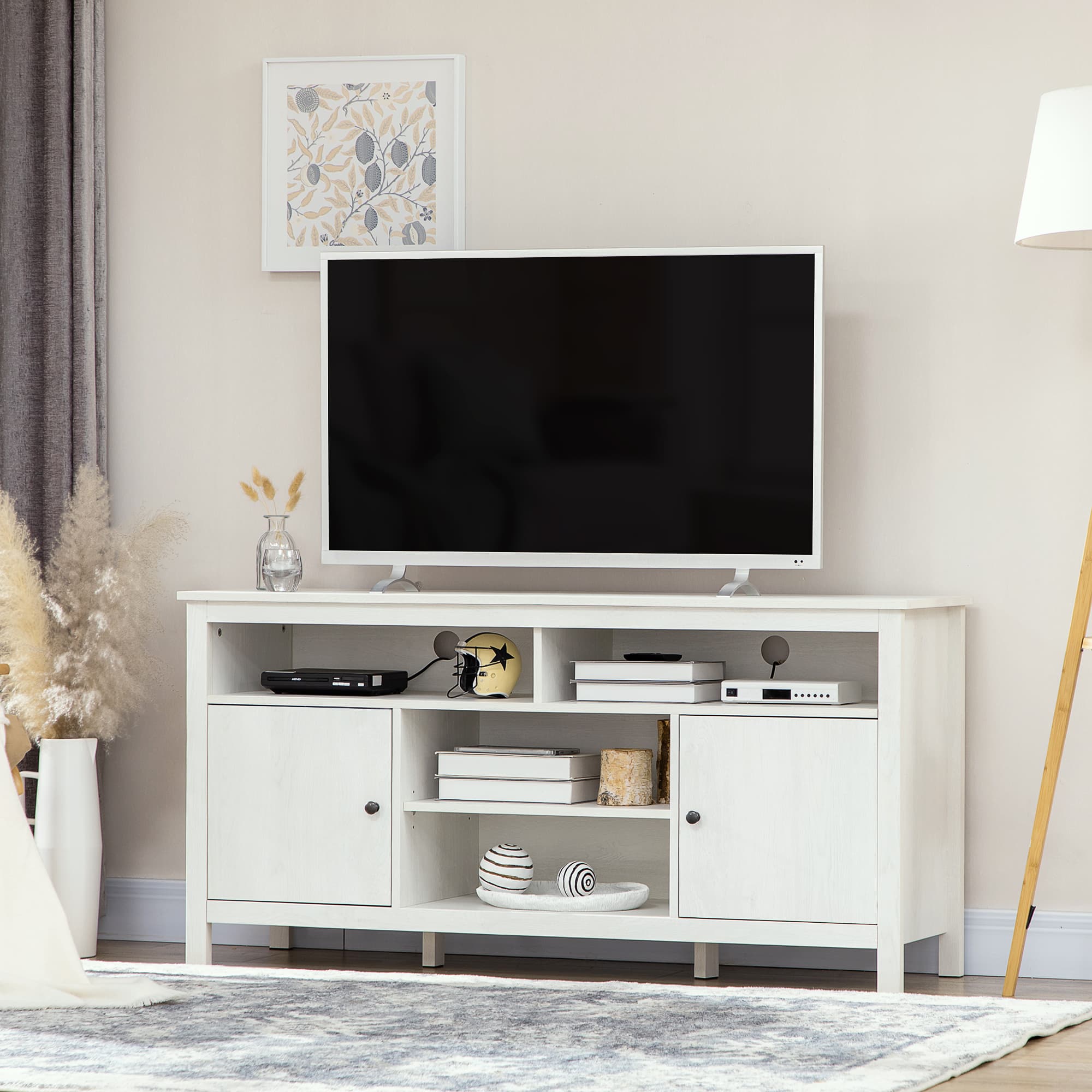 HOMCOM Entertainment Center TV Stand for 65" TVs, Storage Shelves & Doors, White for Living Room Bedroom | Aosom.com