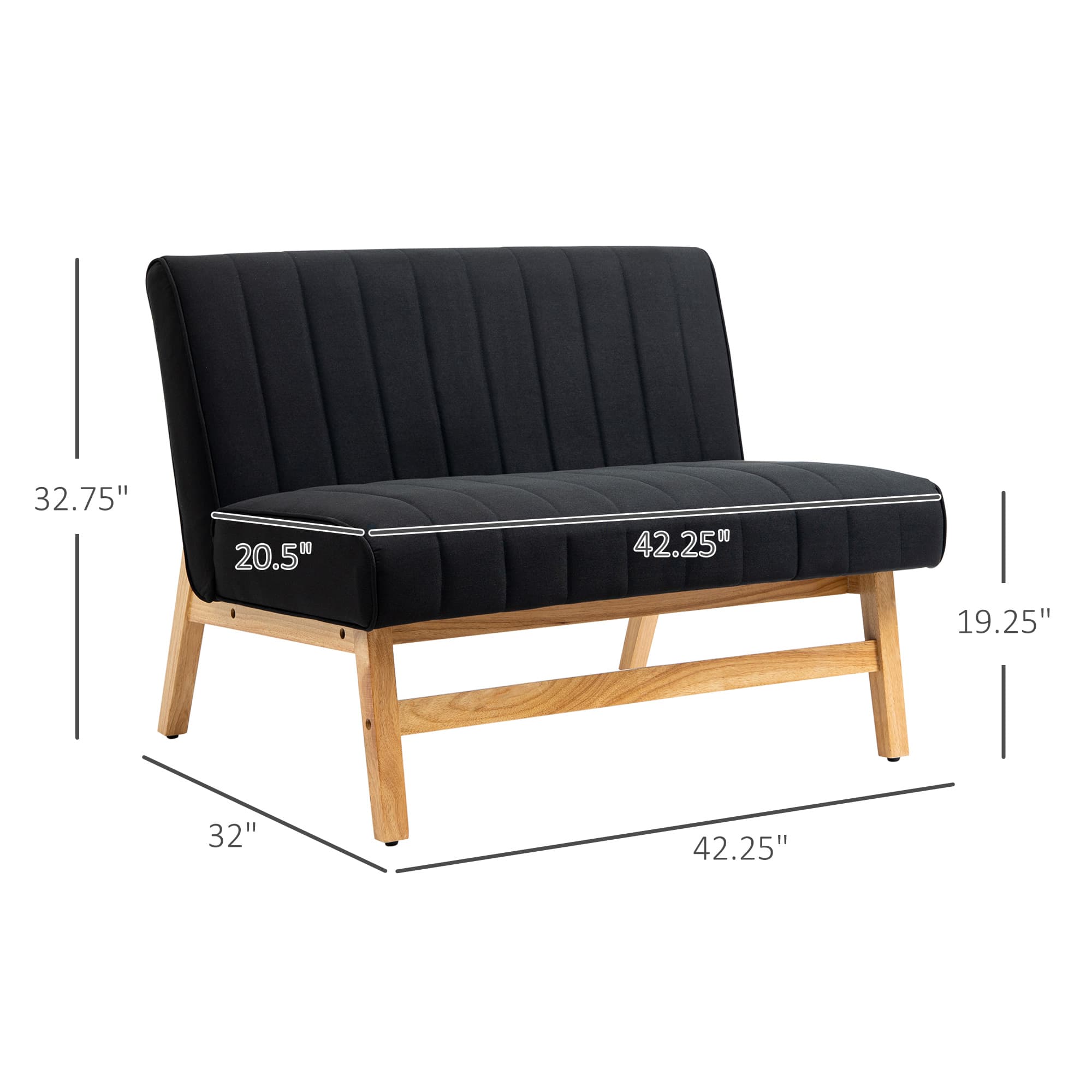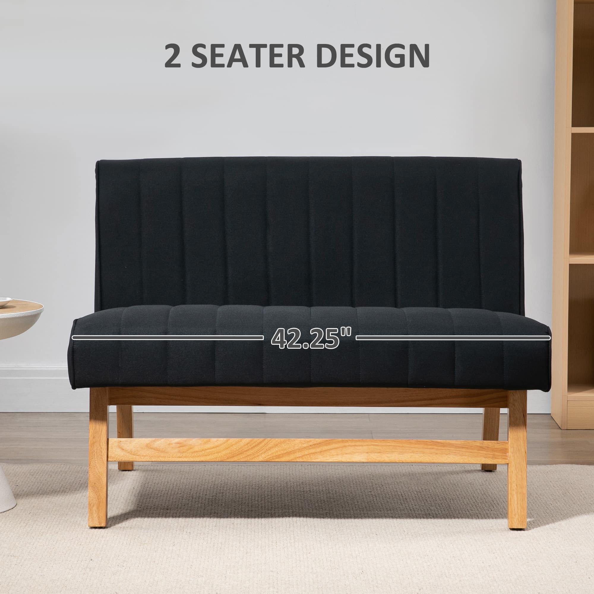 HOMCOM 42" Loveseat Sofa for Bedroom, Modern Love Seats Furniture, Upholstered 2 Seater Couch with Rubber Wood Legs, Black