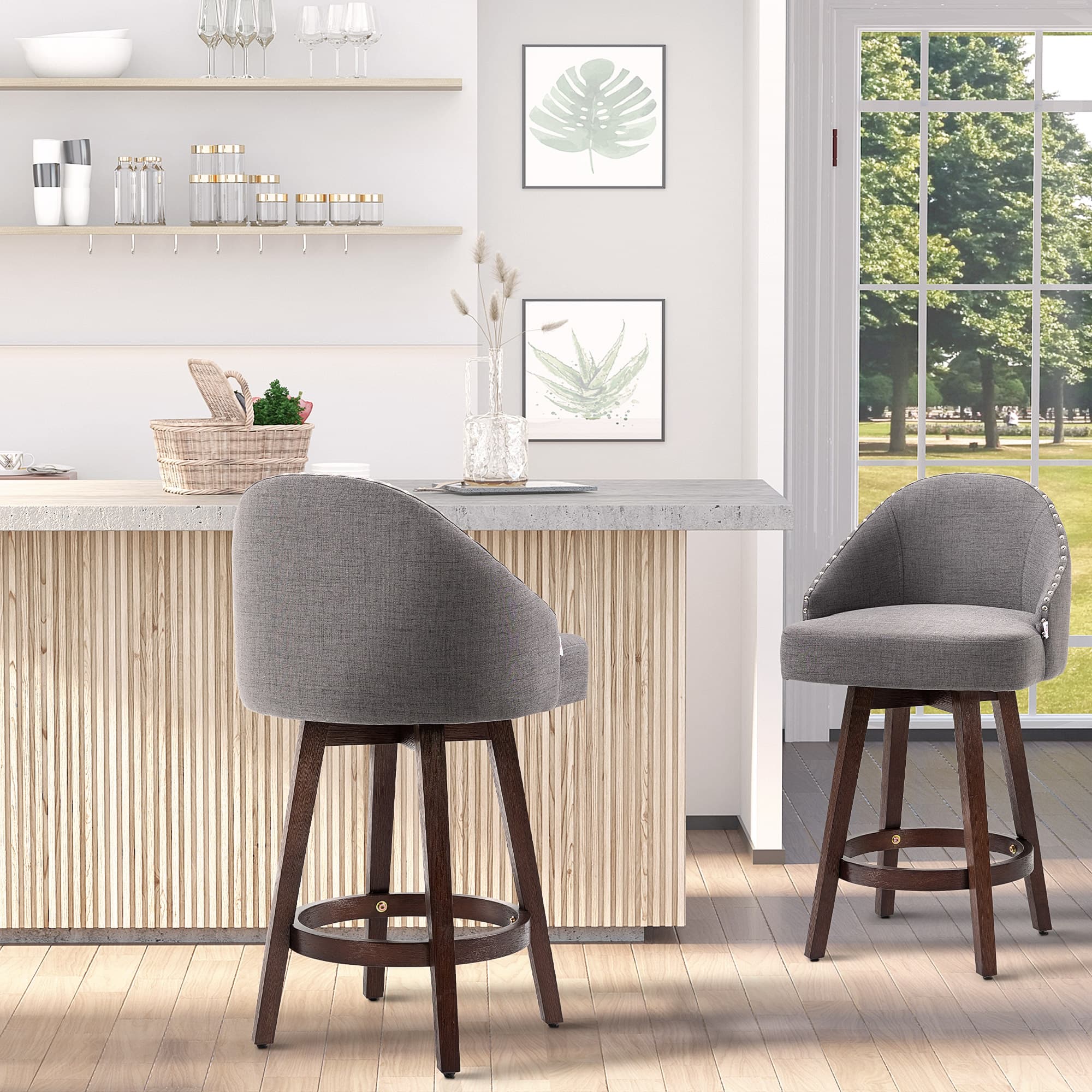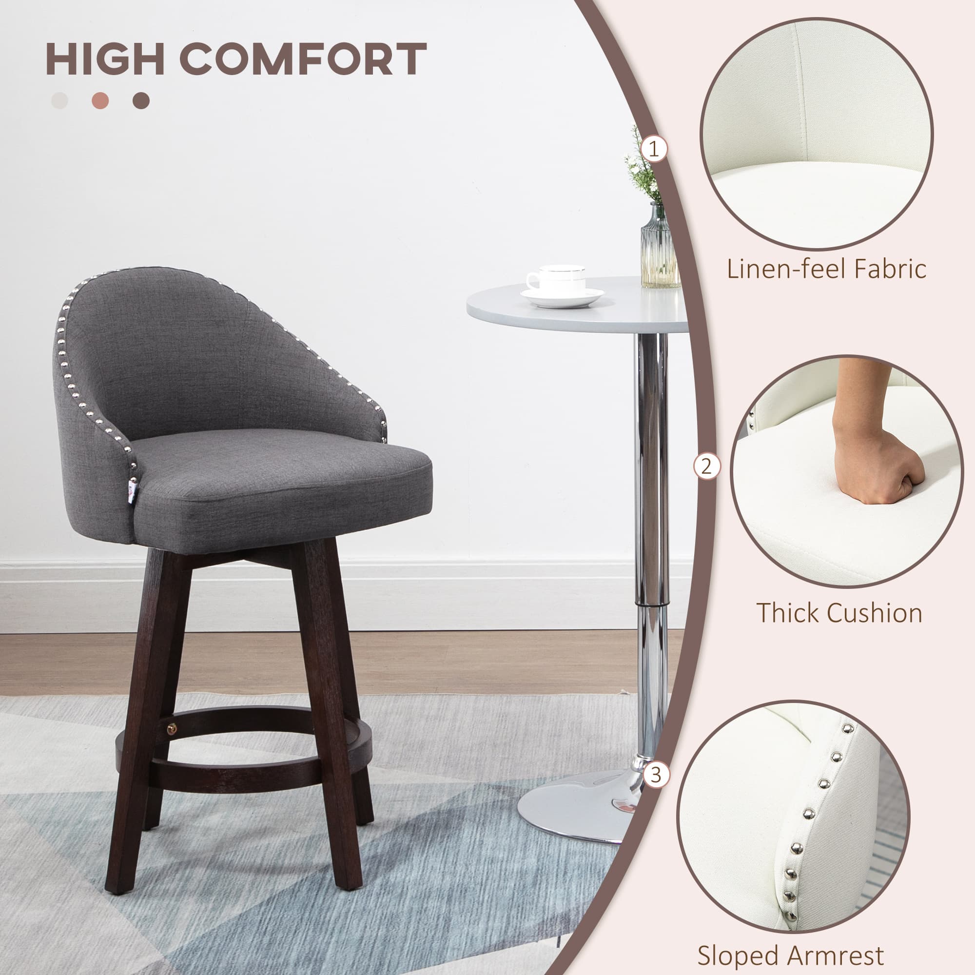 Enhance your dining space with this set of barstools from HOMCOM, perfect for enjoying drinks with a friend or guest. The nailhead trim on the backrest adds a stylish and trendy touch to the counter-height stools. Crafted with elegant and sturdy rubber wood legs, the stools feature a cushion and low backrest for comfortable support. Ideal for upgrading your home bar area.