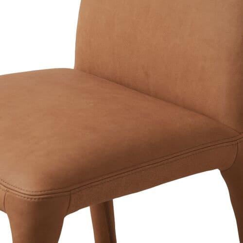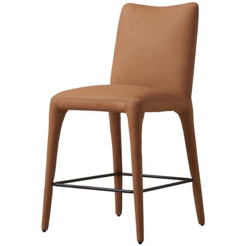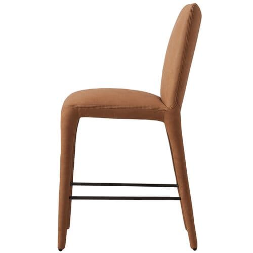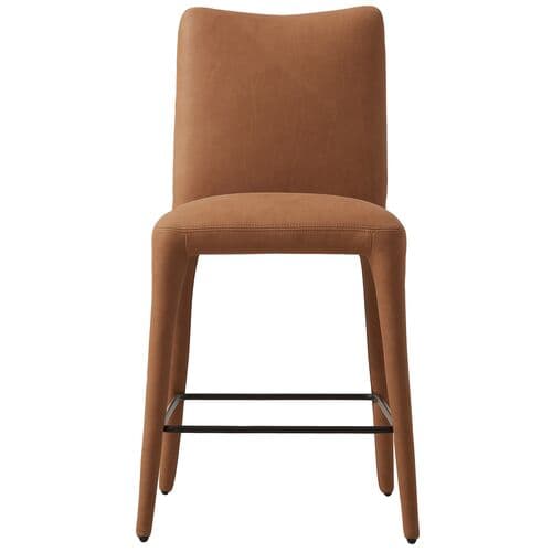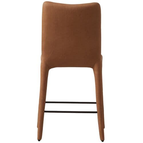 The sleek counter stool features sophisticated top-grain leather upholstery. Its iron footrest offers a subtle metallic accent, and the generous cushioning ensures comfort and style.