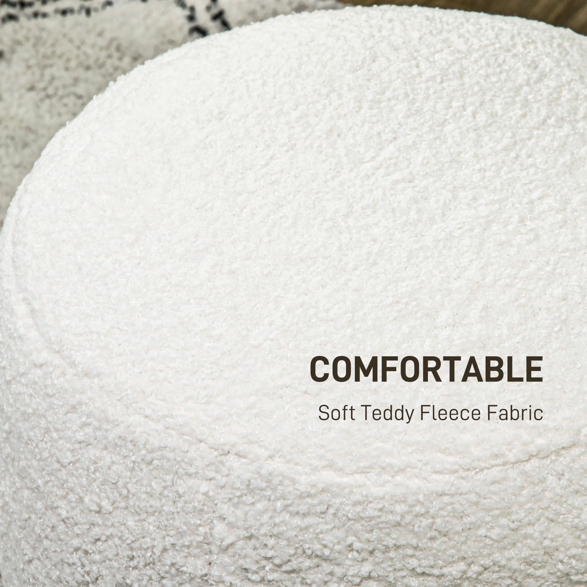 HOMCOM Round Ottoman, Upholstered Foot Stool with Steel Frame, Teddy Fleece Fabric for Living Room, Entryway, White