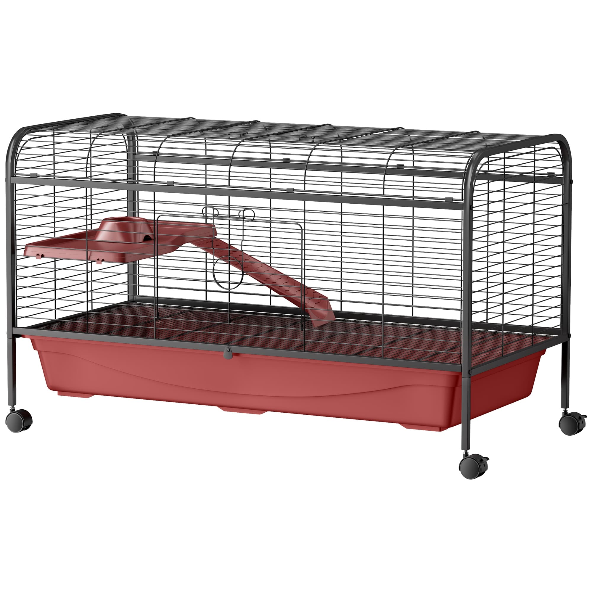 PawHut 48"L Small Animal Cage, Pet Play House for Rabbit Hutch Ferret with Feeder, Rolling Wheels, Platform, Ramp