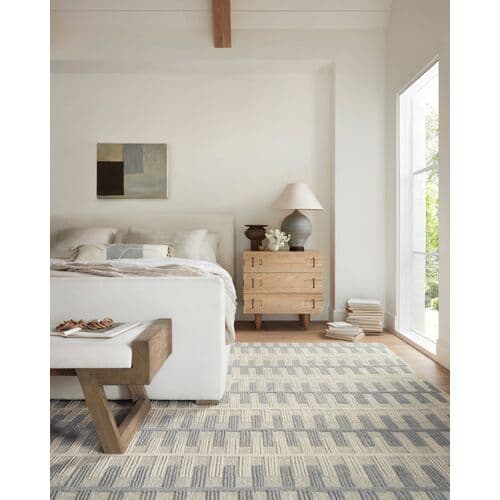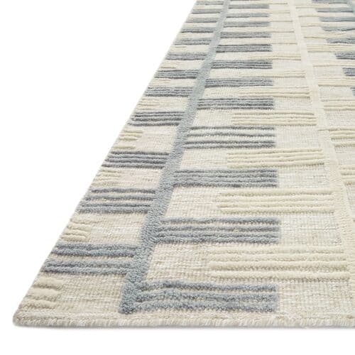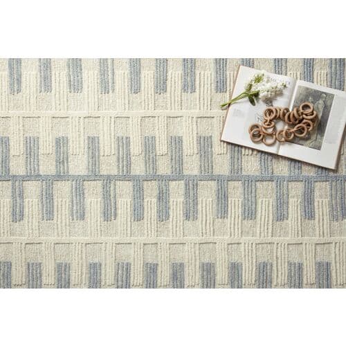 Inspired by Swedish patterns, this hand-knotted rug features a calming, rhythmic design with a welcoming high-low texture. Viscose introduces a gentle shine to the soft wool. A rug pad is advised to prevent slipping and prolong the rug's life.