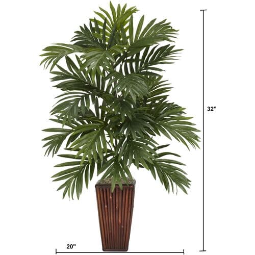 Enjoy a touch of the tropics anywhere with this faux golden cane palm. Its lifelike appearance is enhanced by a bamboo planter, adding an organic feel.