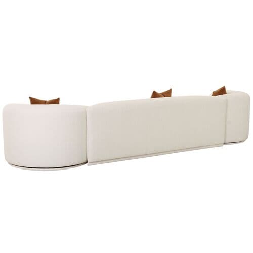 Chic and versatile, this three-piece sofa includes a settee and two swivel chairs that work individually or together. The plush bouclé fabric enhances each piece's gentle curves. Equipped with spring seat support and ample foam cushion filling, this handcrafted sofa offers comfort and style.