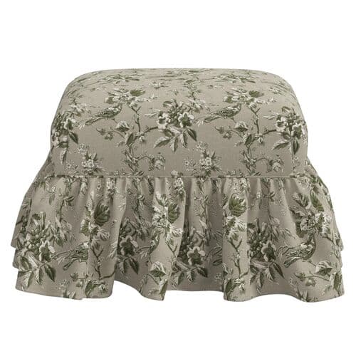 June Ottoman - Michigan Bird Toile - Green | Footstool, Footrest, Low Seat - Ideal Storage, Decor, Furniture