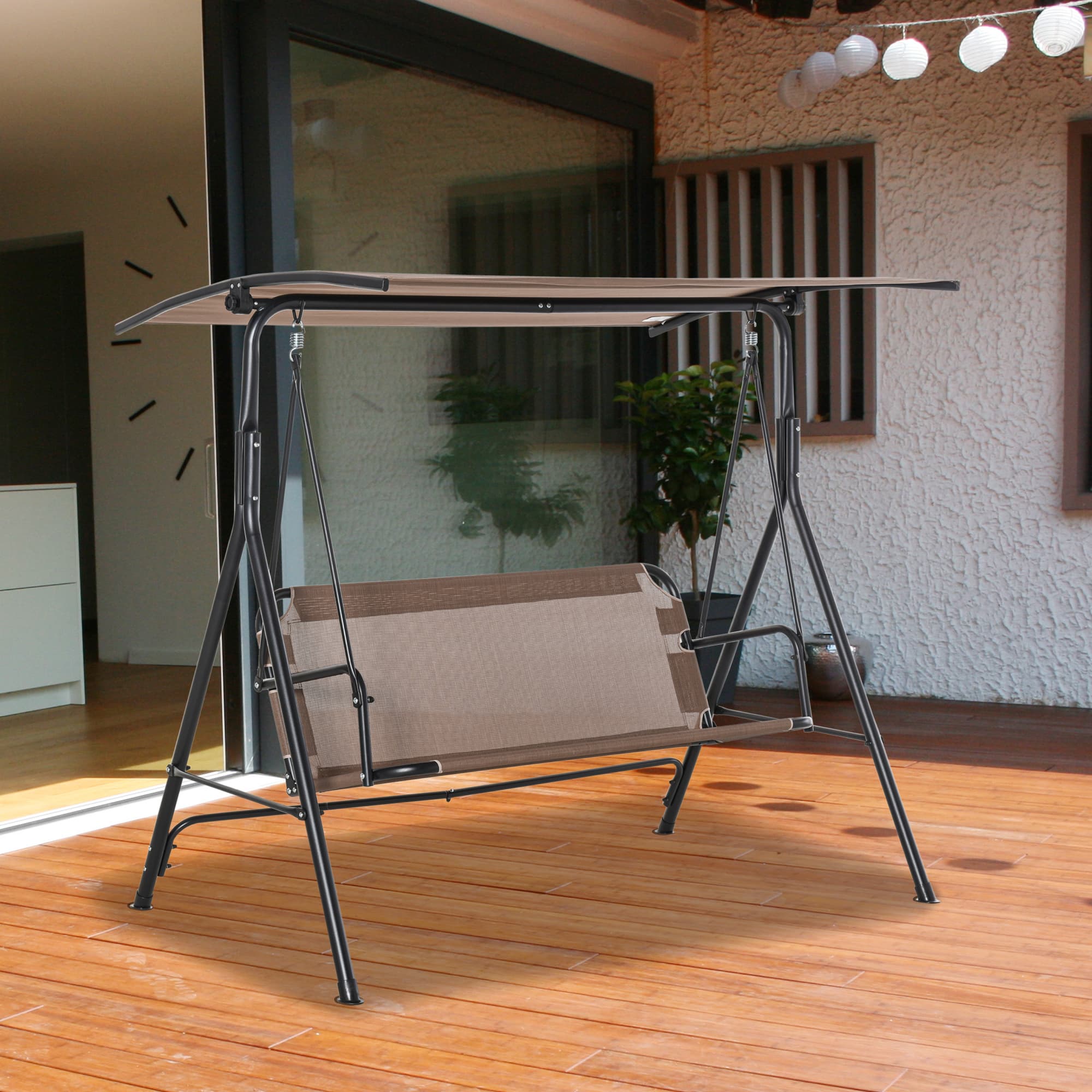 Outsunny 2-Seater Patio Swing Chair, Outdoor Adjustable Canopy Porch Swing with Armrests, Texeline Fabric and Steel Frame, Brown
