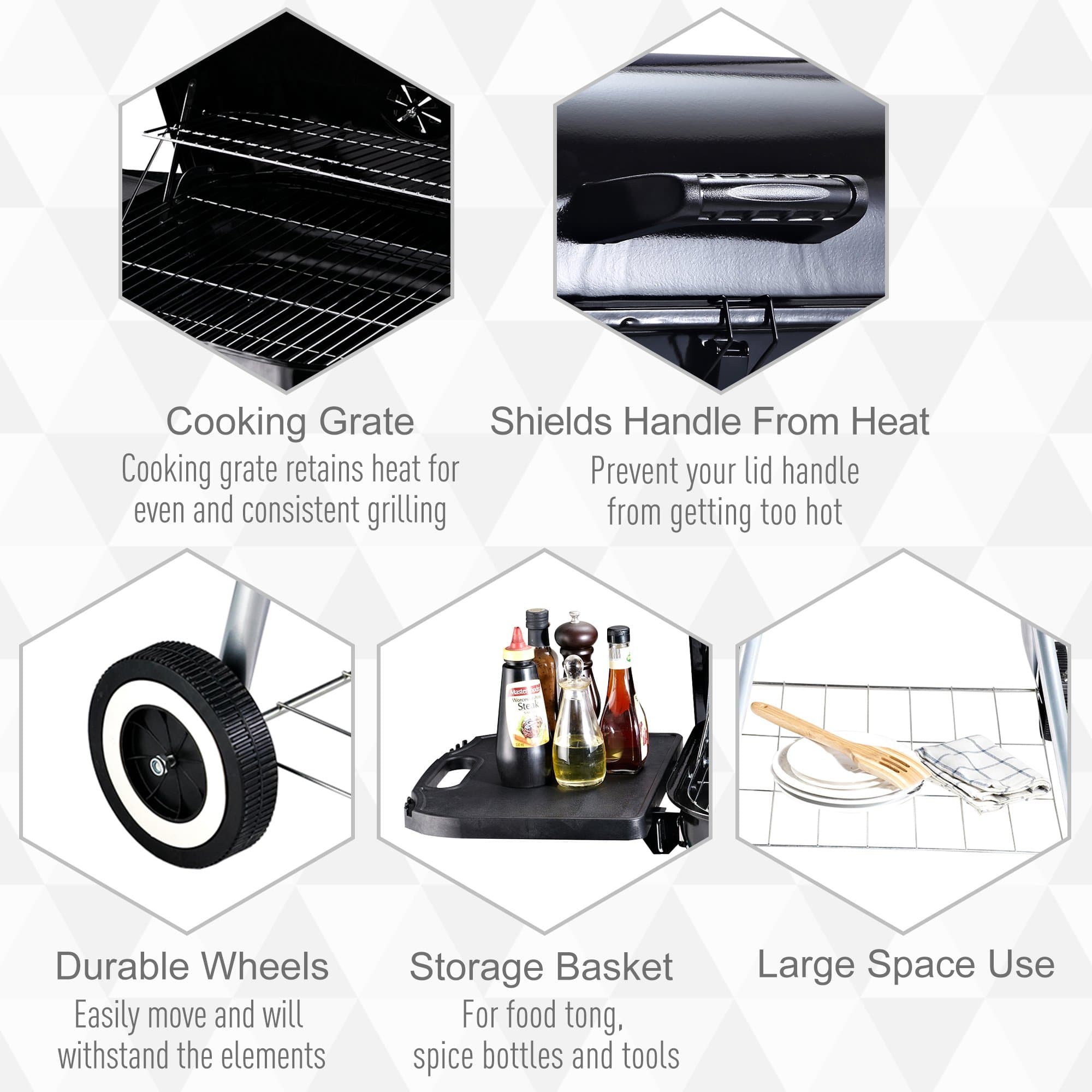 Improve your outdoor cooking with the Outsunny Portable Charcoal Grill. Its lightweight build, along with wheels and a convenient handle, make it easy to move for picnics or barbecues. Achieve perfect grilling temperatures up to 1112°F with complete control, while the warming rack keeps food warm and ready to serve. Enjoy enhanced grilling and flavor with Outsunny.