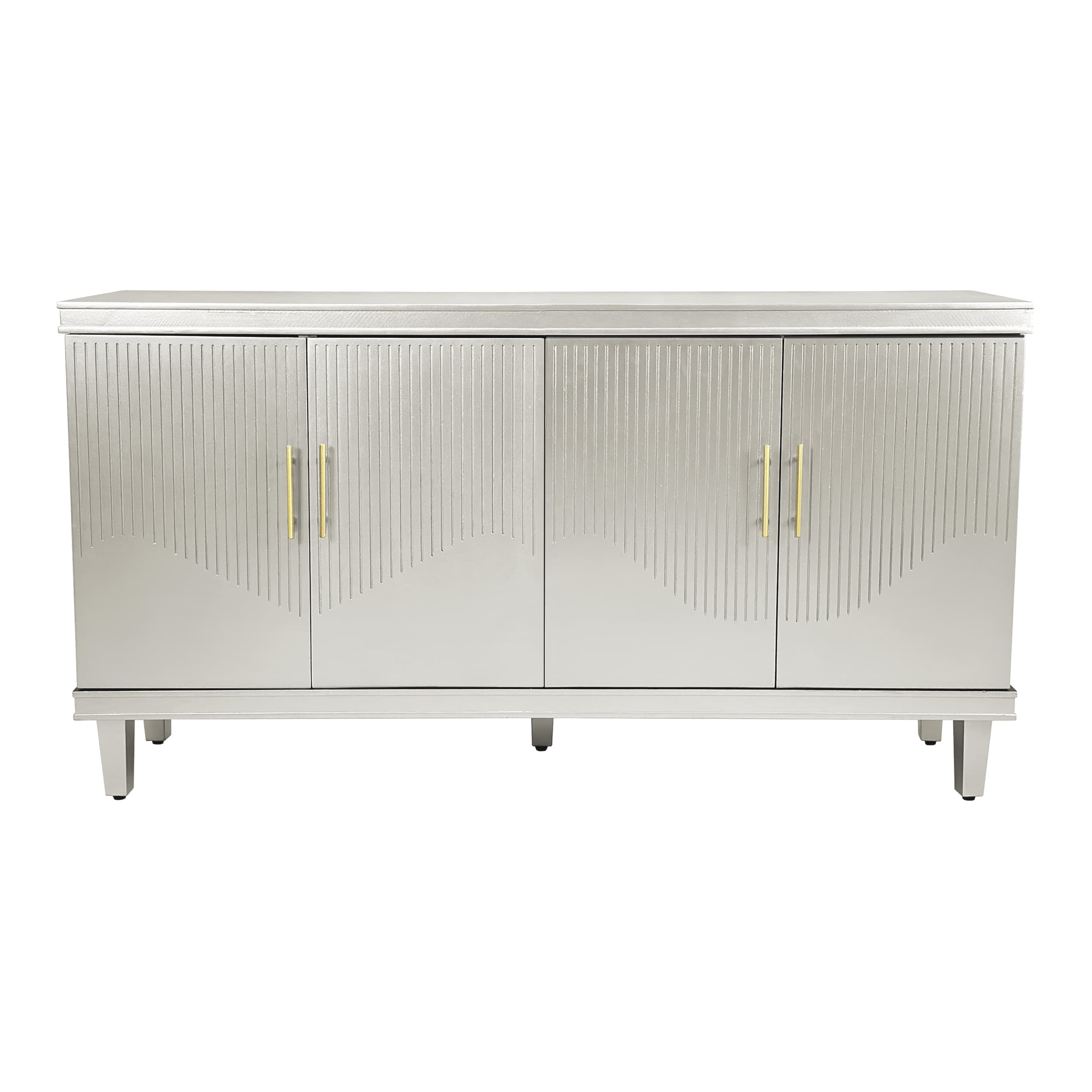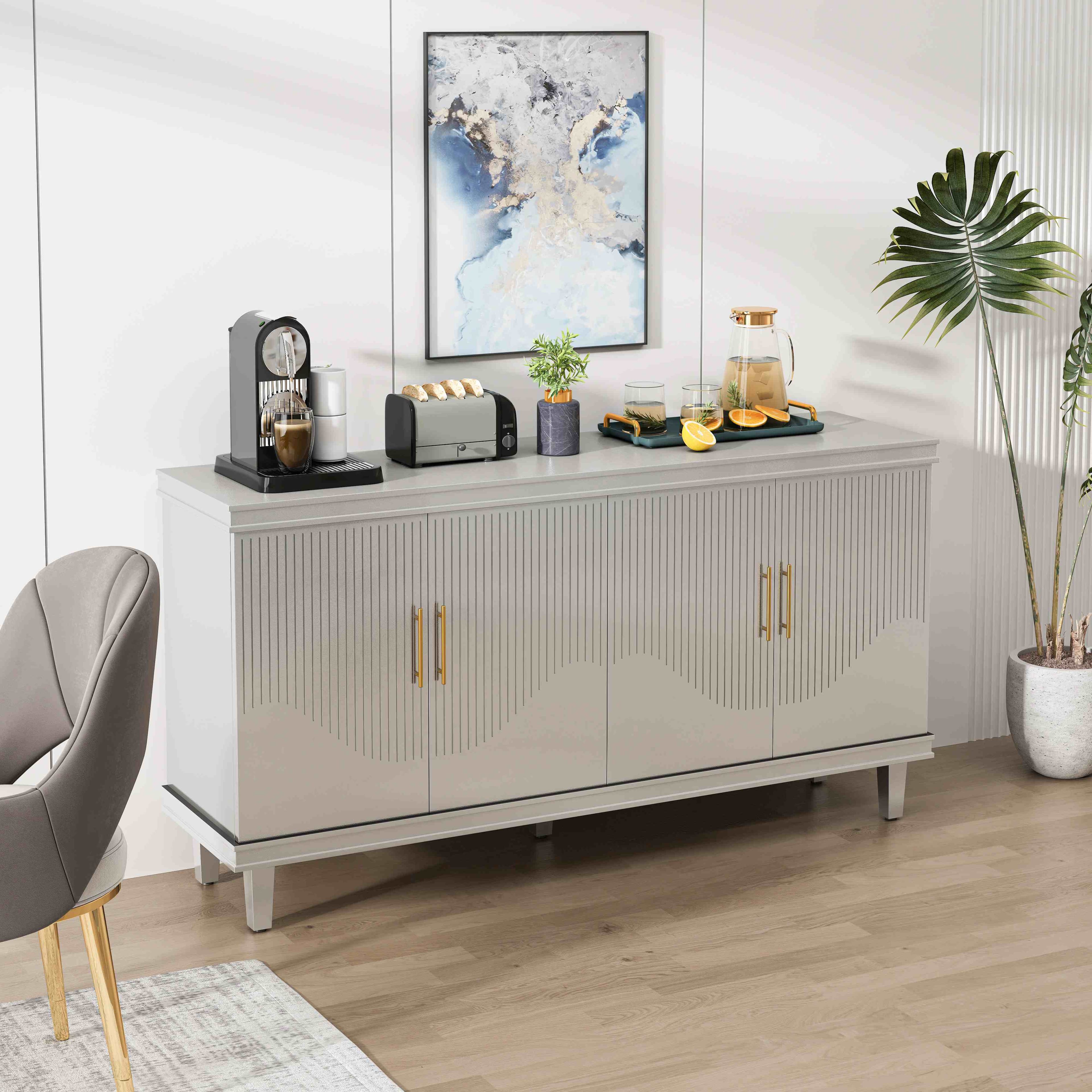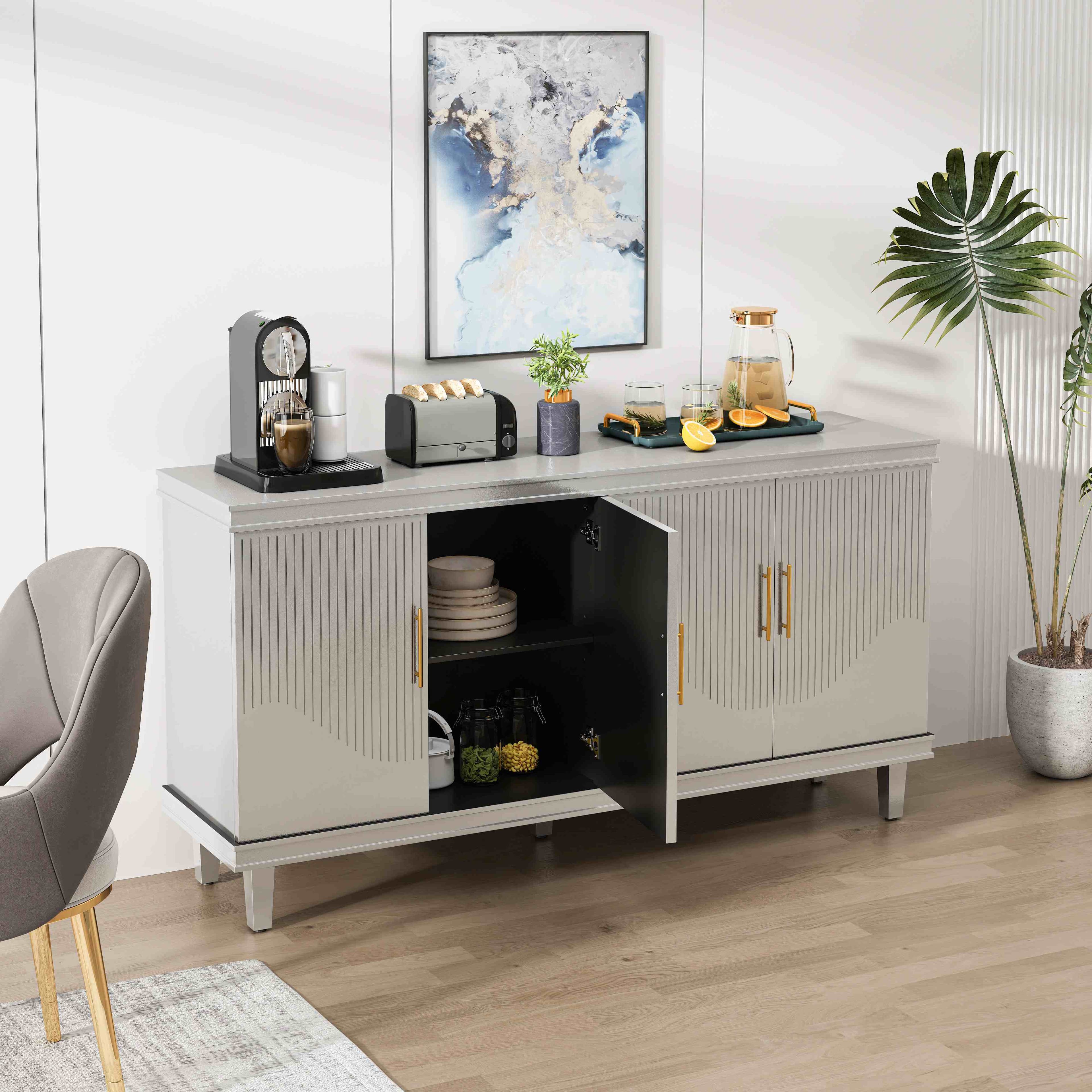 Enhance your home organization with this sizable 4-door cabinet in a champagne finish. Constructed from high-quality MDF and solid wood, it ensures durability with sturdy solid wood legs. Featuring large double storage compartments and adjustable shelves, it offers plenty of storage for books, decor, and more. The top surface holds up to 330 lbs and laminate supports up to 66 lbs, making it suitable for various storage needs while adding minimalist style to your space.