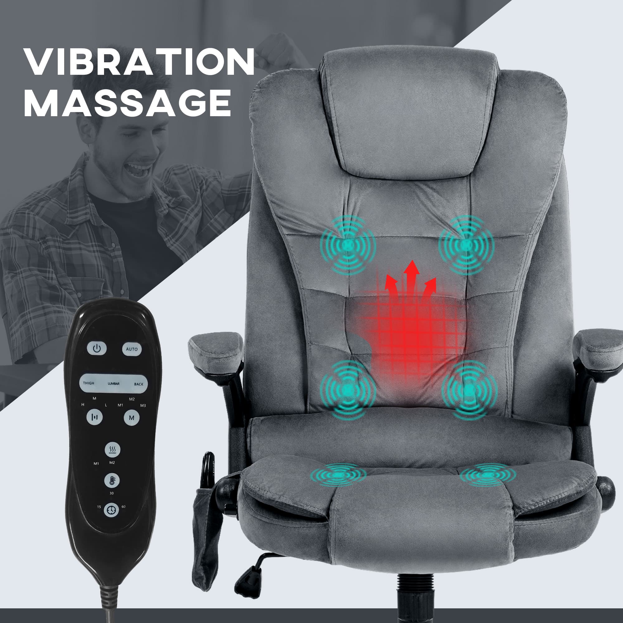 Vinsetto 6 Point Heated Office Chair with Heat, Velvet High Back Executive Office Chair, Vibrating Massage Office Chair, Dark Gray | Aosom.com