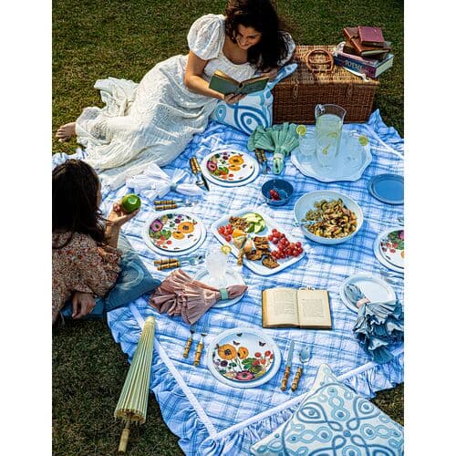 The new melamine dinnerware is crafted with the adventurous entertainer in mind. It combines durability and design, featuring the iconic Berry & Thread pattern, allowing seamless entertaining both indoors and outdoors.