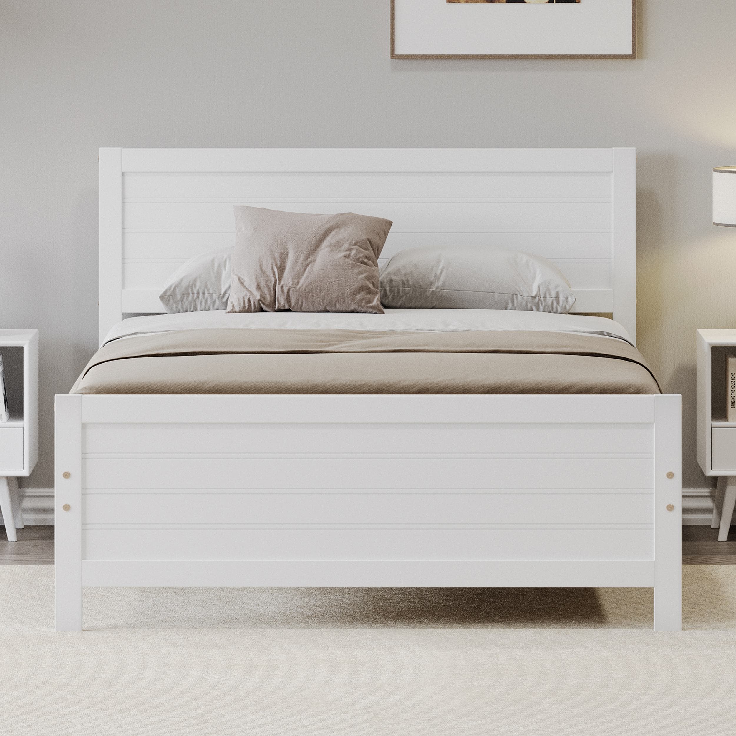Farmhouse Style Full Size Bed Frame with Wood Headboard, Slatted Bed Frame with Under-Bed Storage Space, Ideal for Kids and Adults, White | Aosom.com