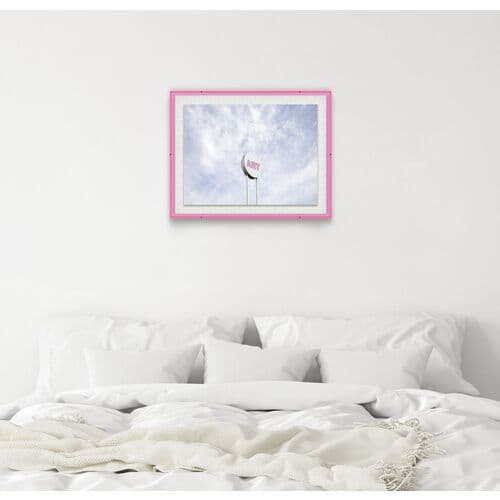 First showcased at One Kings Lane, this artwork by Claudia Lucia features a sign with 'art' against a cloudy blue sky, offering a direct interpretation. It is printed on smooth matte watercolor paper and mounted over a linen backer in an acrylic shadowbox frame, arriving ready to hang. Drawing inspiration from her Southern California roots, Claudia Lucia captures bright, airy scenes, favoring intentional, carefully selected color palettes. Her background in editorial photography allows her to explore spaces through her lens, a passion ignited in childhood that continues to drive her artistic work.