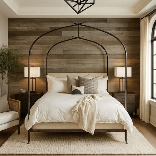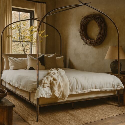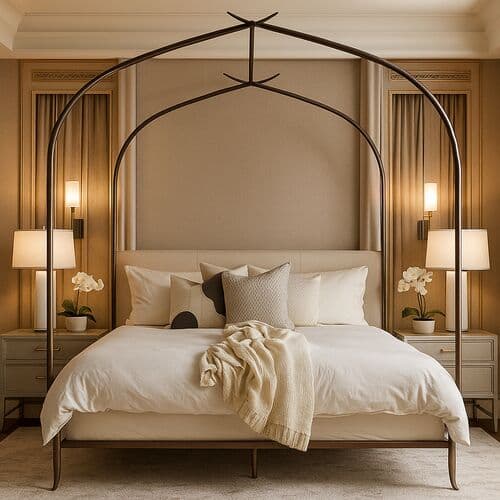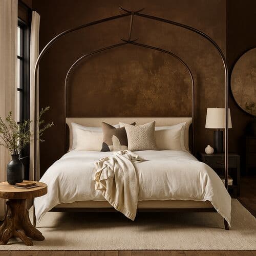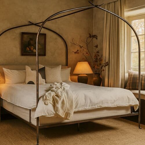 Atrium Canopy Bed - Antique Black/Stainguard Linen - Lauren Liess | Poster Bed, Draped Bed