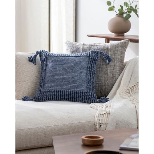 Alaric Chunky Tassel Indoor/Outdoor Pillow | Cushion, Bolster - Blue