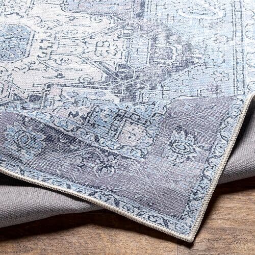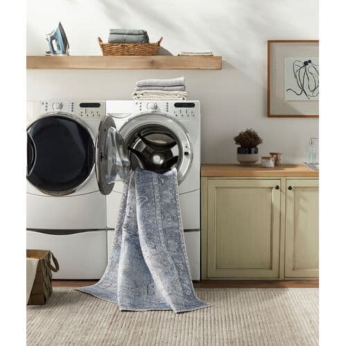 The Kassy area rug brings a modern touch to your home with its updated traditional design. Made from a Chenille-Polyester blend, it combines softness with durability. Its machine-woven construction guarantees longevity, even in high-traffic areas. The rug is easy to care for; simply machine wash on a delicate cycle and line dry. This area rug will enhance any room with its unique style.