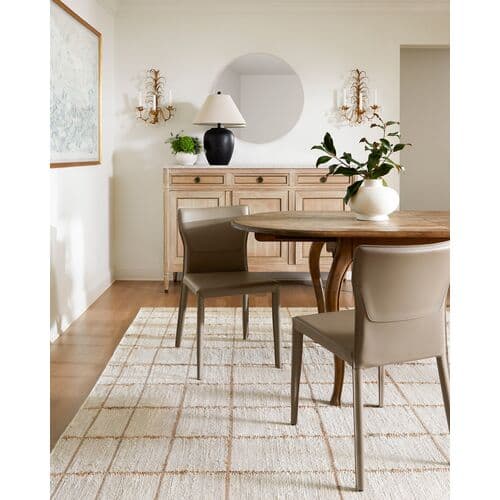 The Flin handmade rug combines contemporary chic with the Farmhouse Cottage style, featuring an irregular striped design in neutral tones. This unique piece, handwoven in India from jute, offers a low-profile look, making it easy to maintain. Using a rug pad is recommended to enhance its comfort and longevity. Spot clean with water for upkeep. Add style to your living space with the Flin rug.