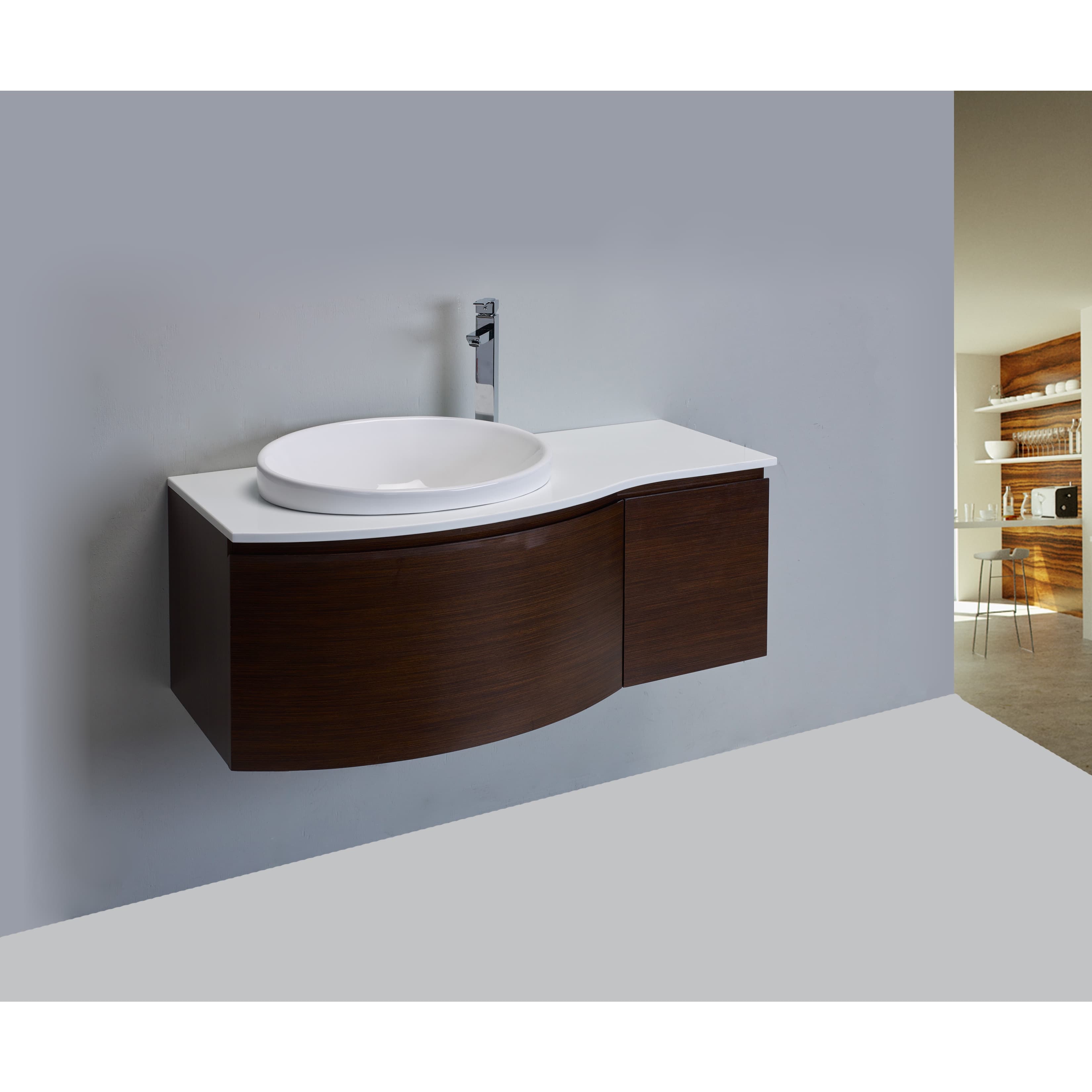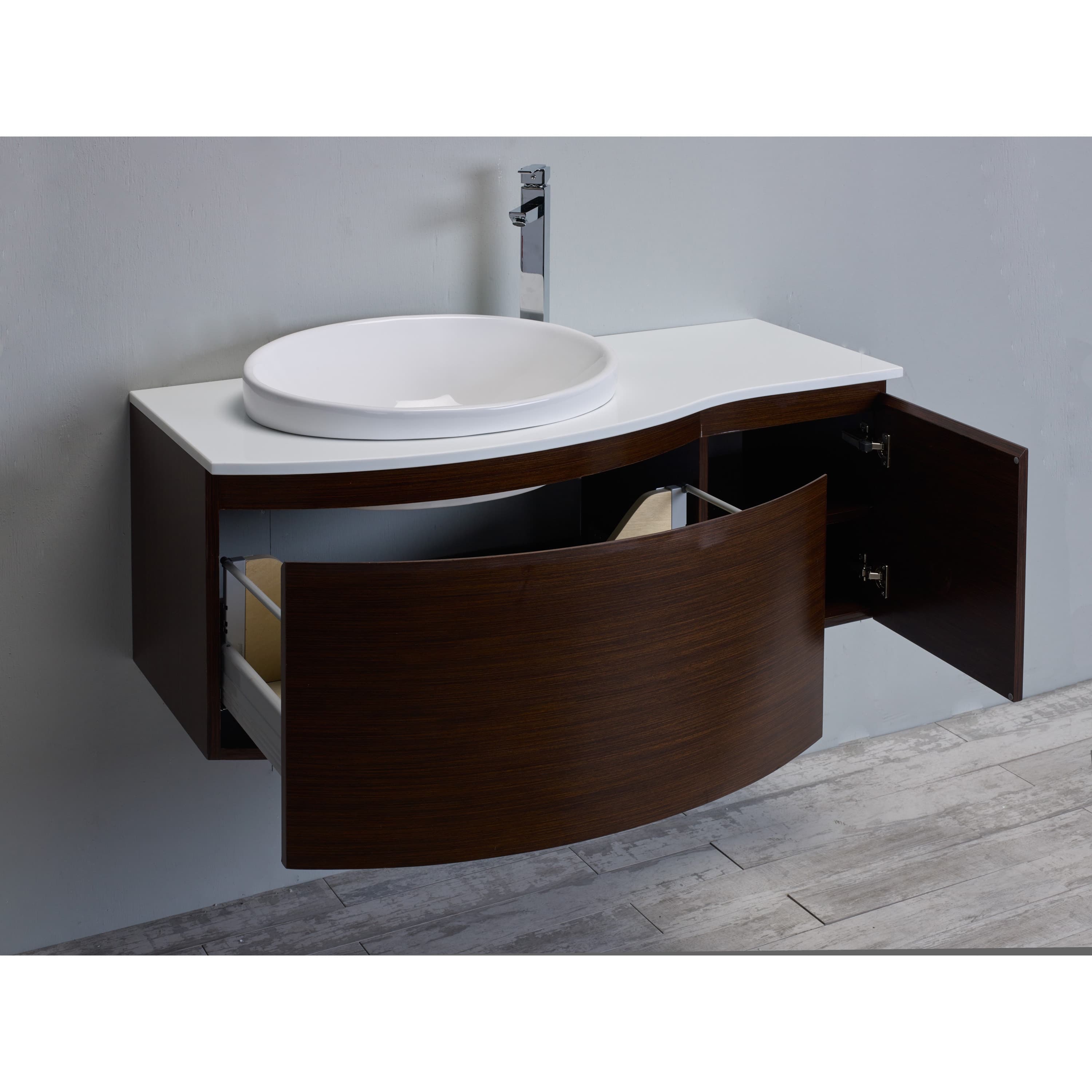 Eviva Brown Finish Ironwood 48-inch Wall-mount Curvy Modern Bathroom Vanity With Glassos Countertop and Sink