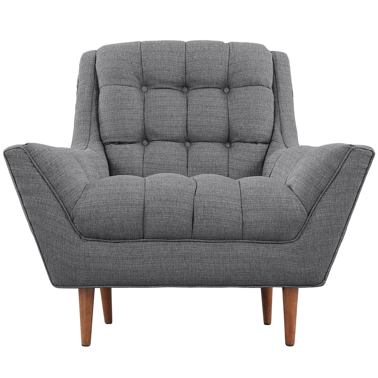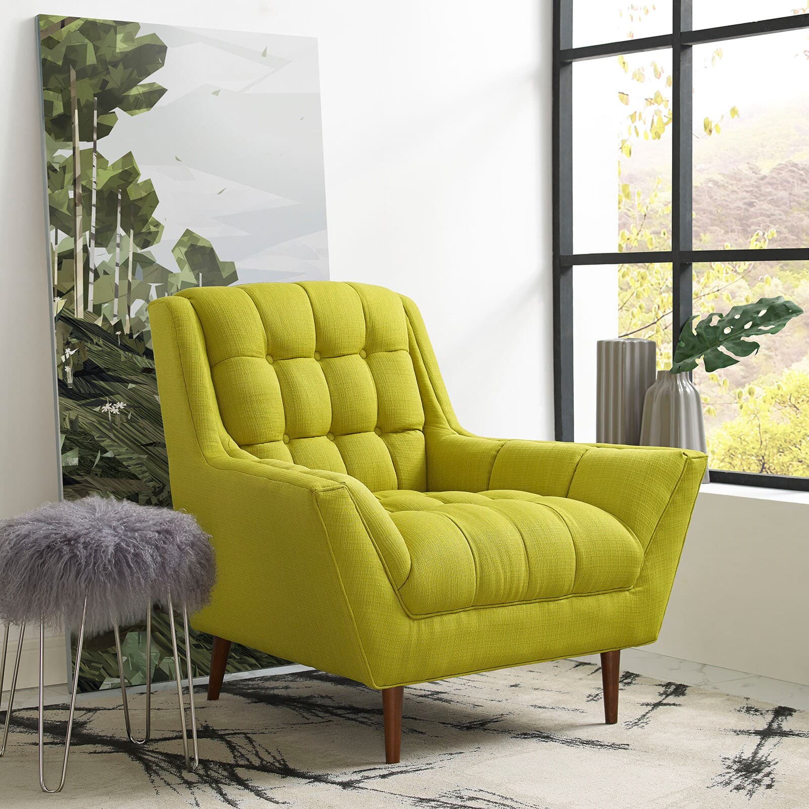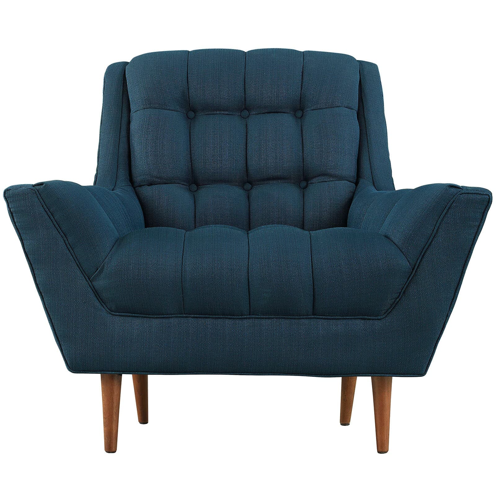 Lounge comfortably with this upholstered armchair from Modway. It features dense foam padding and soft fabric upholstery, embodying a mid-century design. Suitable as a reading chair, a den centerpiece, or a lounge guest chair. The chair's tapered legs have non-marking foot caps for floor protection.