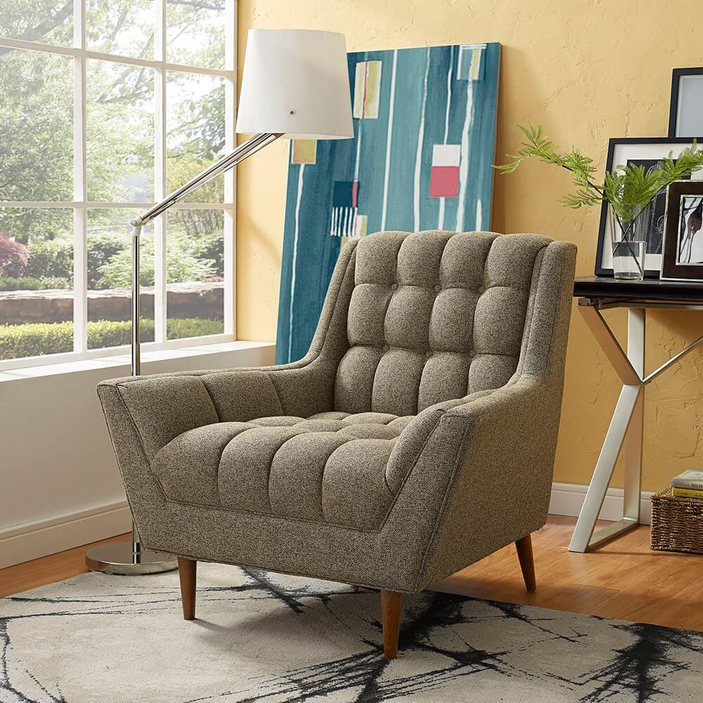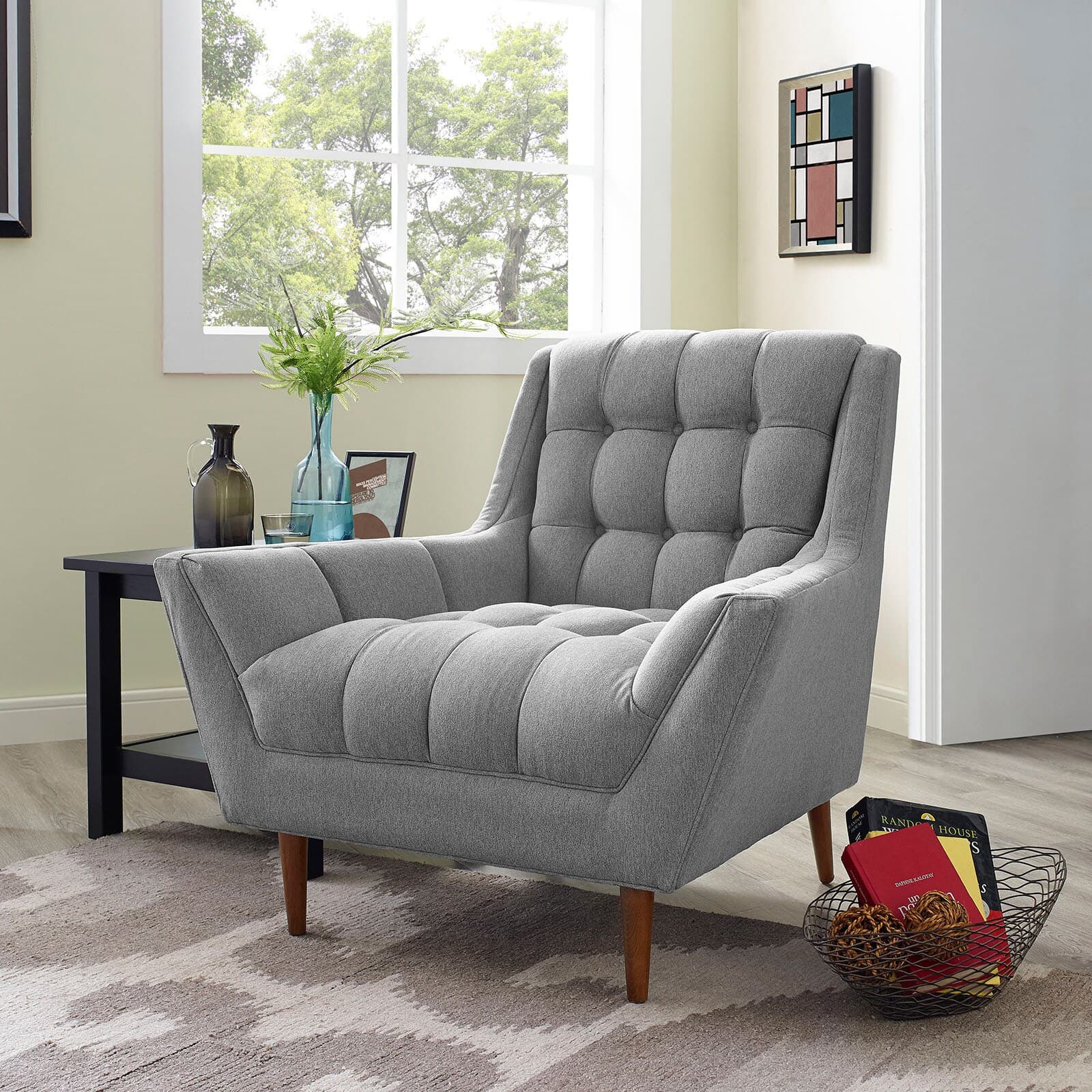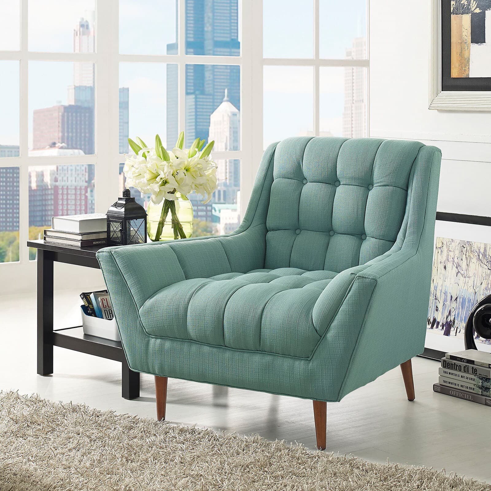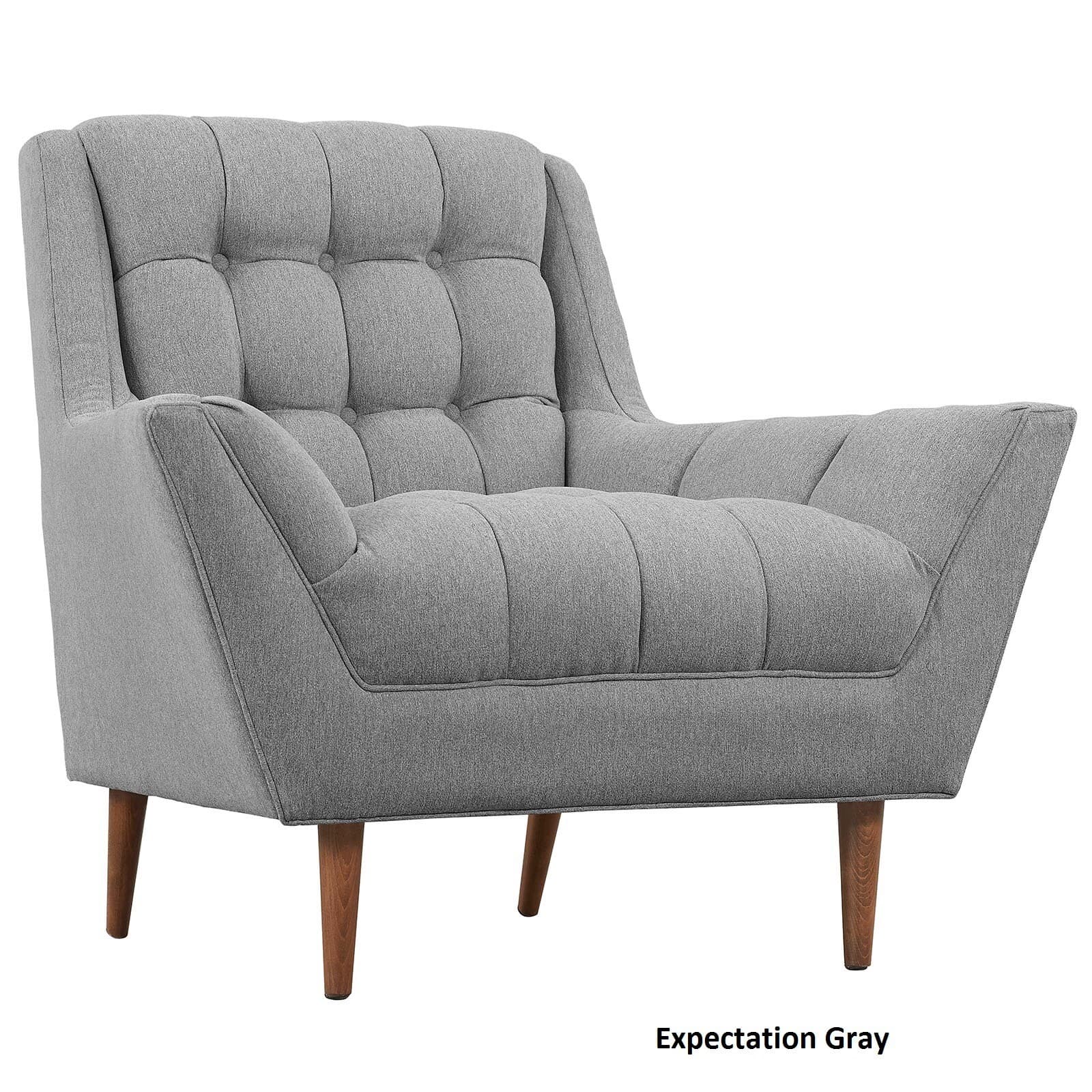 Lounge comfortably with this upholstered armchair from Modway. It features dense foam padding and soft fabric upholstery, embodying a mid-century design. Suitable as a reading chair, a den centerpiece, or a lounge guest chair. The chair's tapered legs have non-marking foot caps for floor protection.