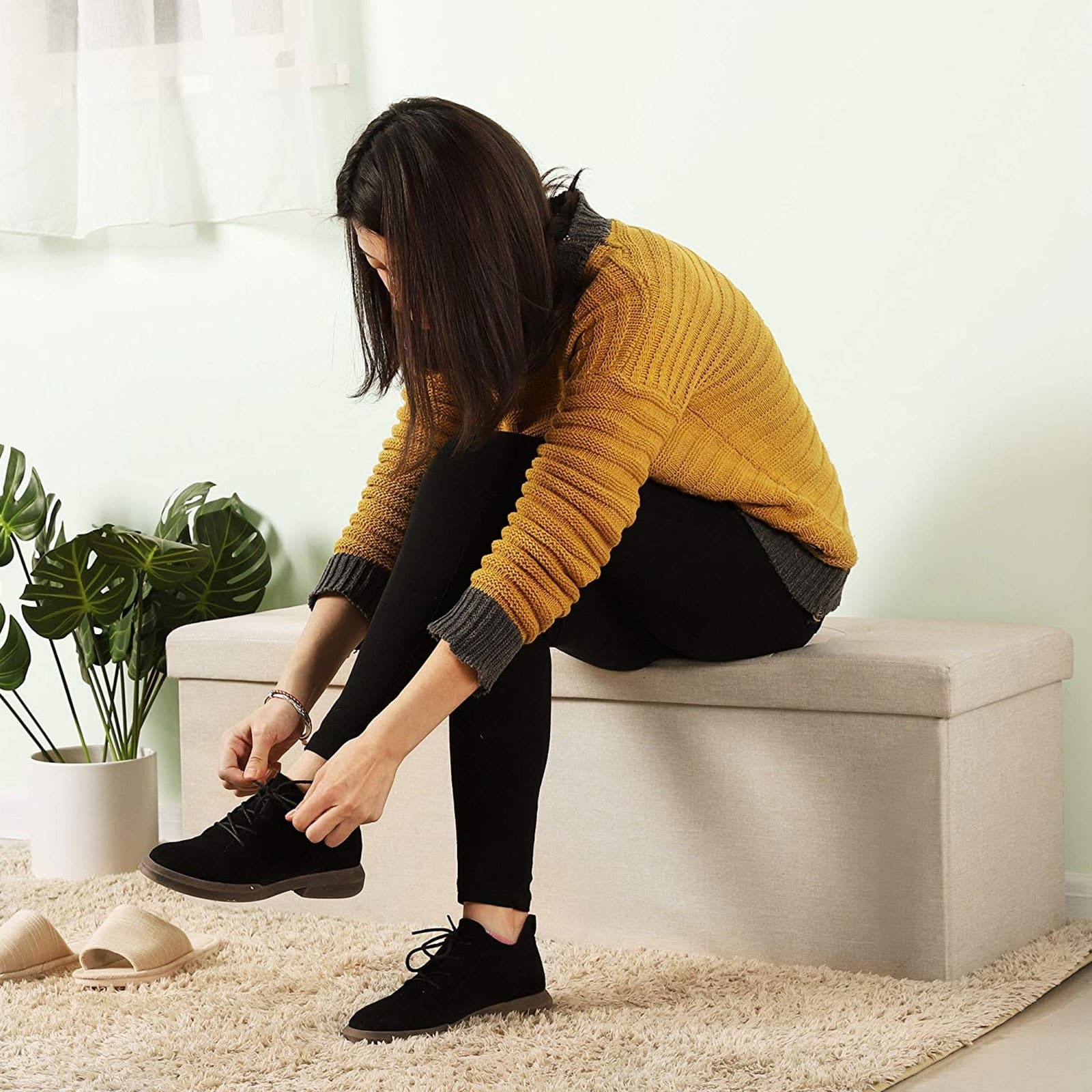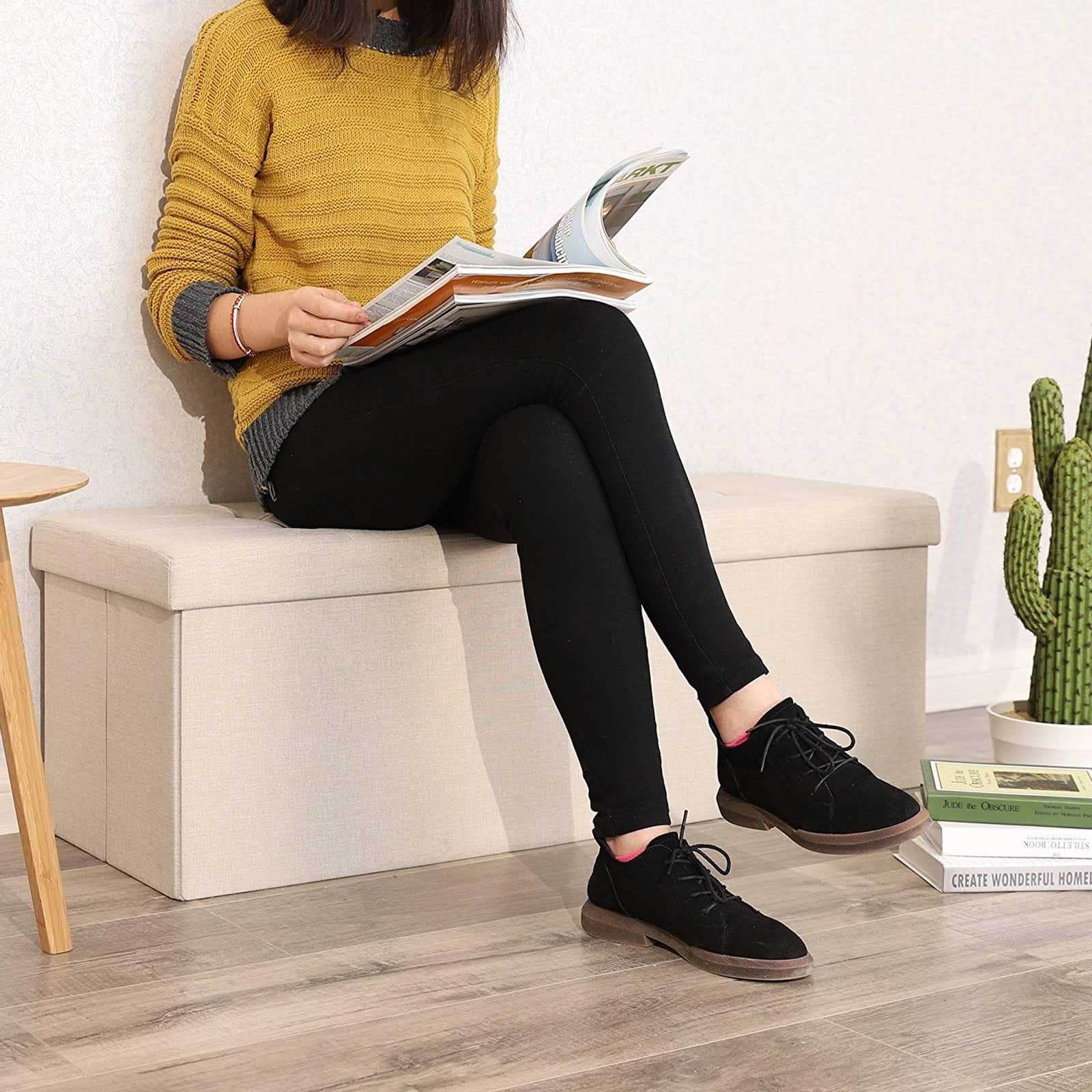 43 Inches Folding Storage Ottoman Bench Storage Chest Foot Rest Stool with Wooden Divider, Holds up to 660 lb