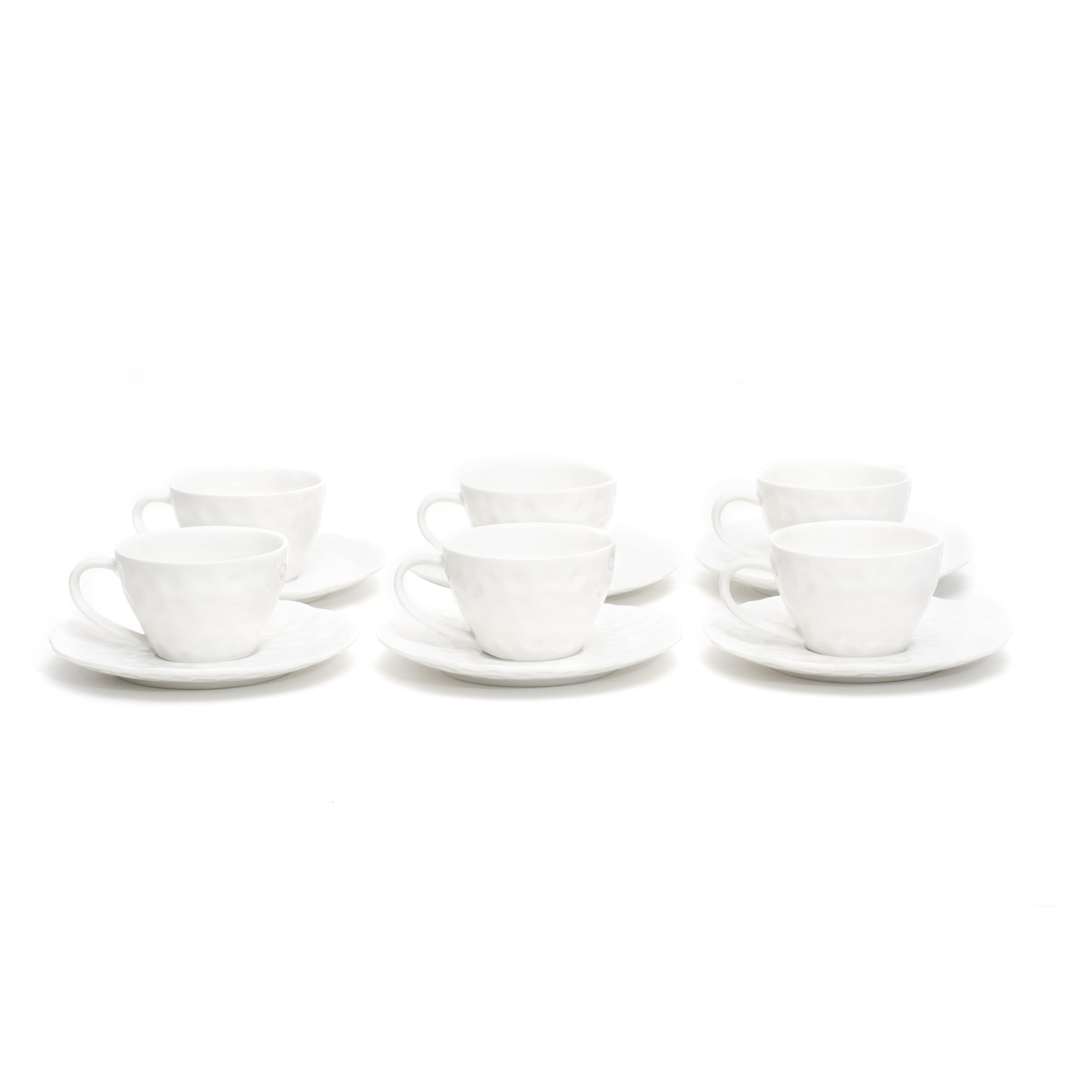 Enjoy a tea party with this set featuring six teacups and six saucers. Made of elegant white porcelain, this durable set is designed to last for years.