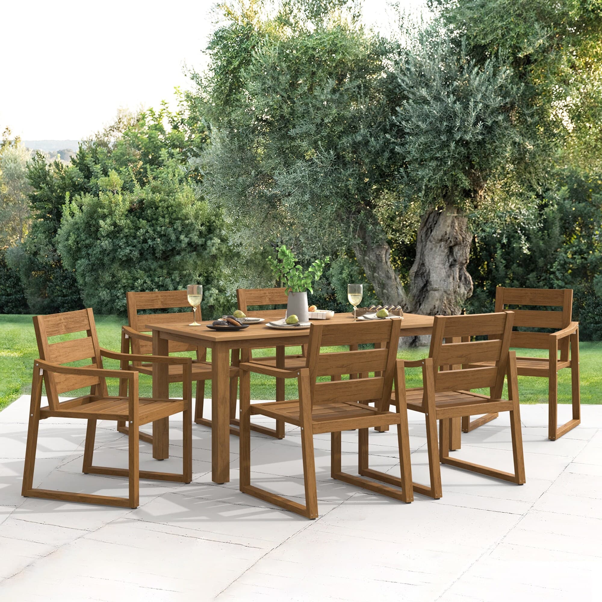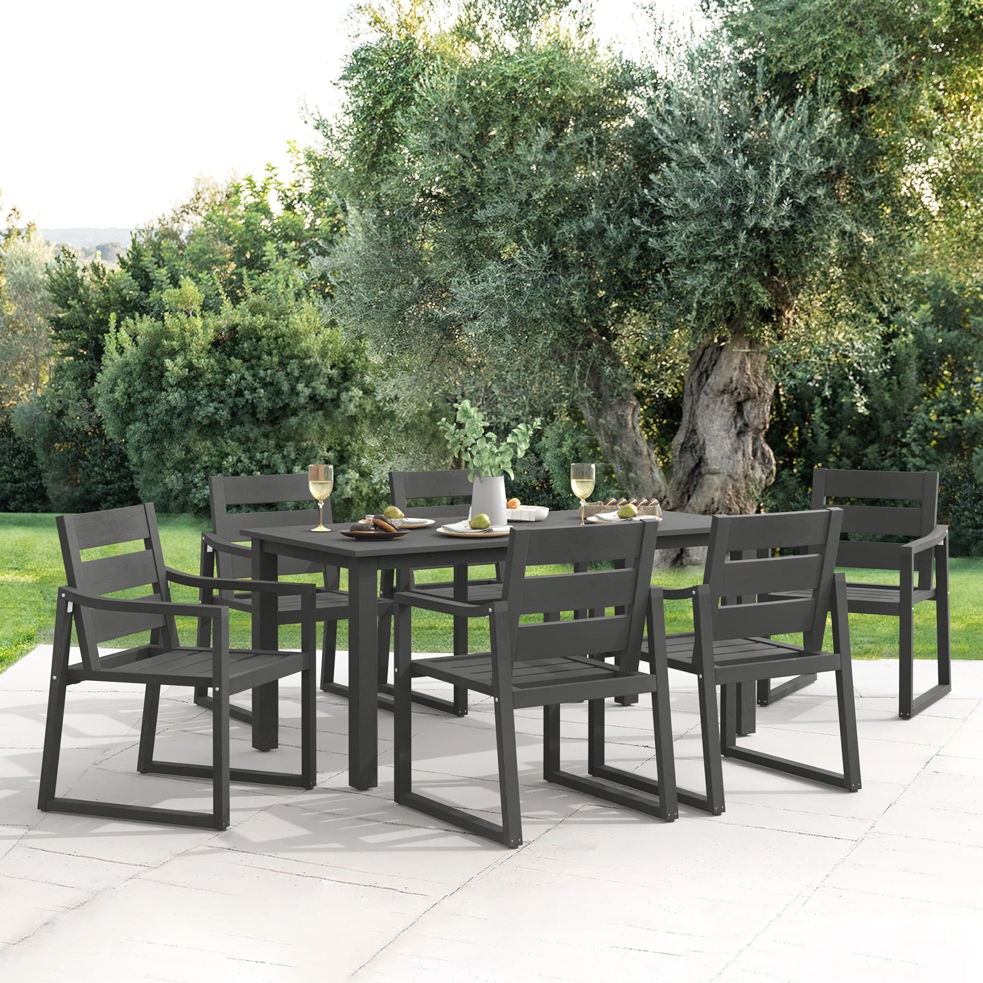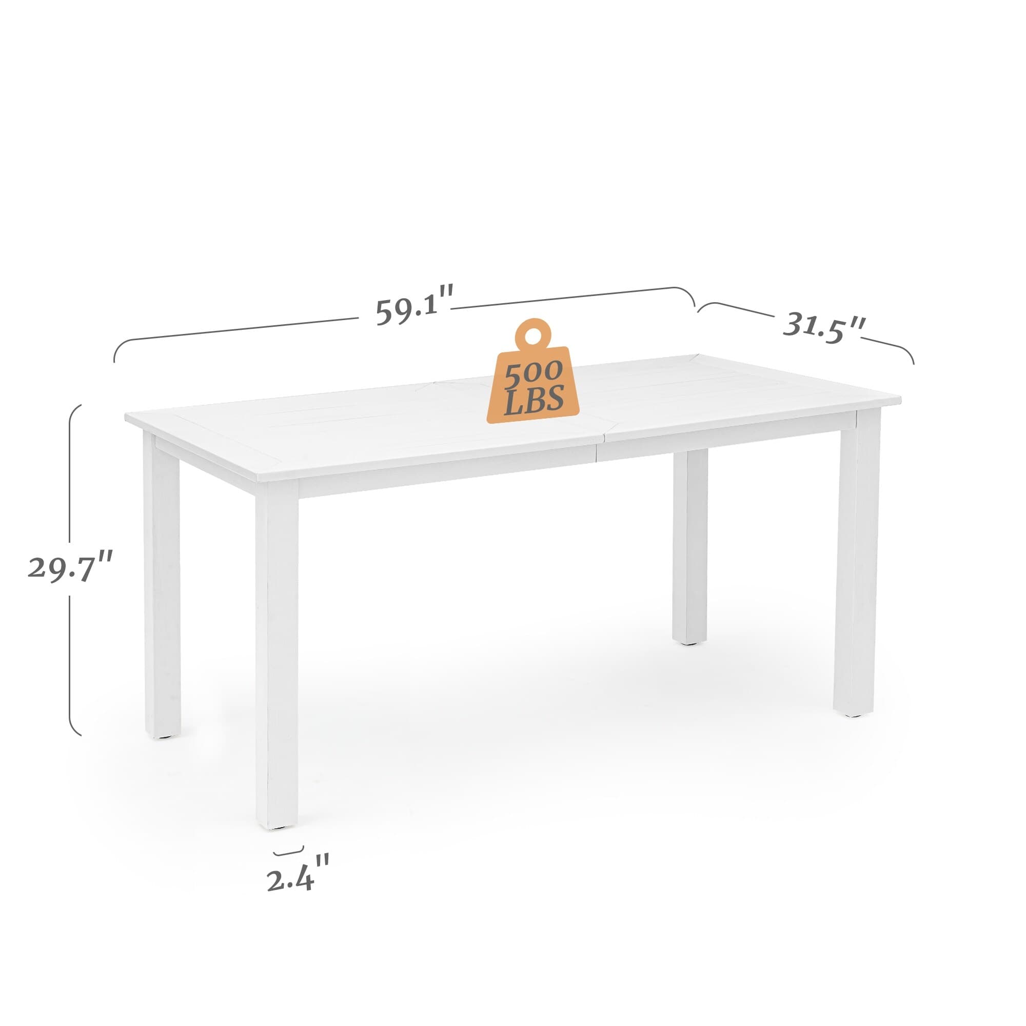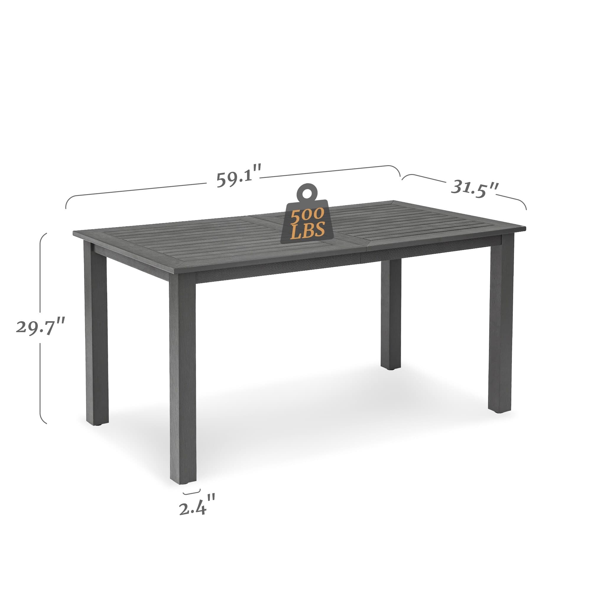 LUE BONA HDPS Outdoor Dining Table Patio Metal Rectangular Table with Wood-grain finish for 6 Person