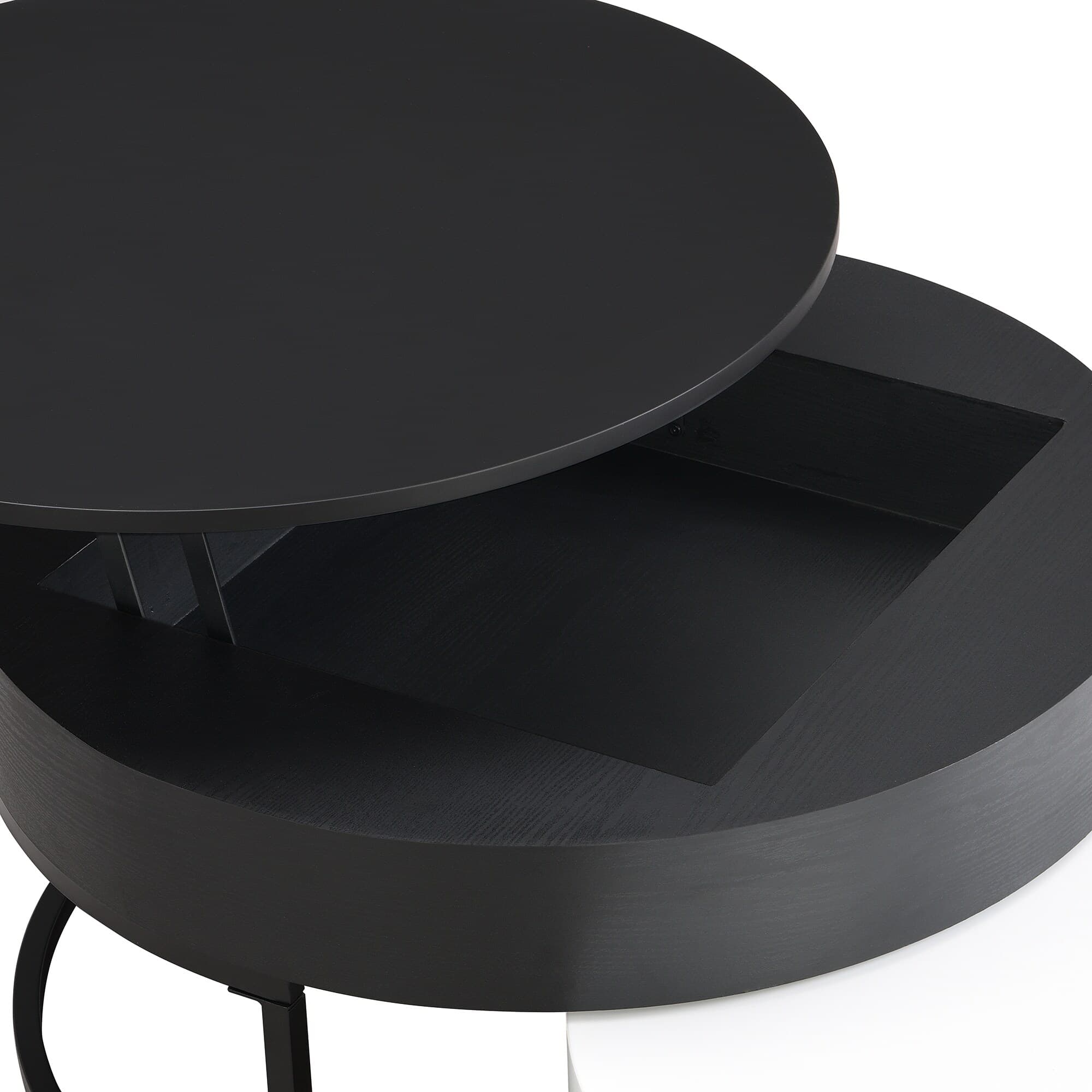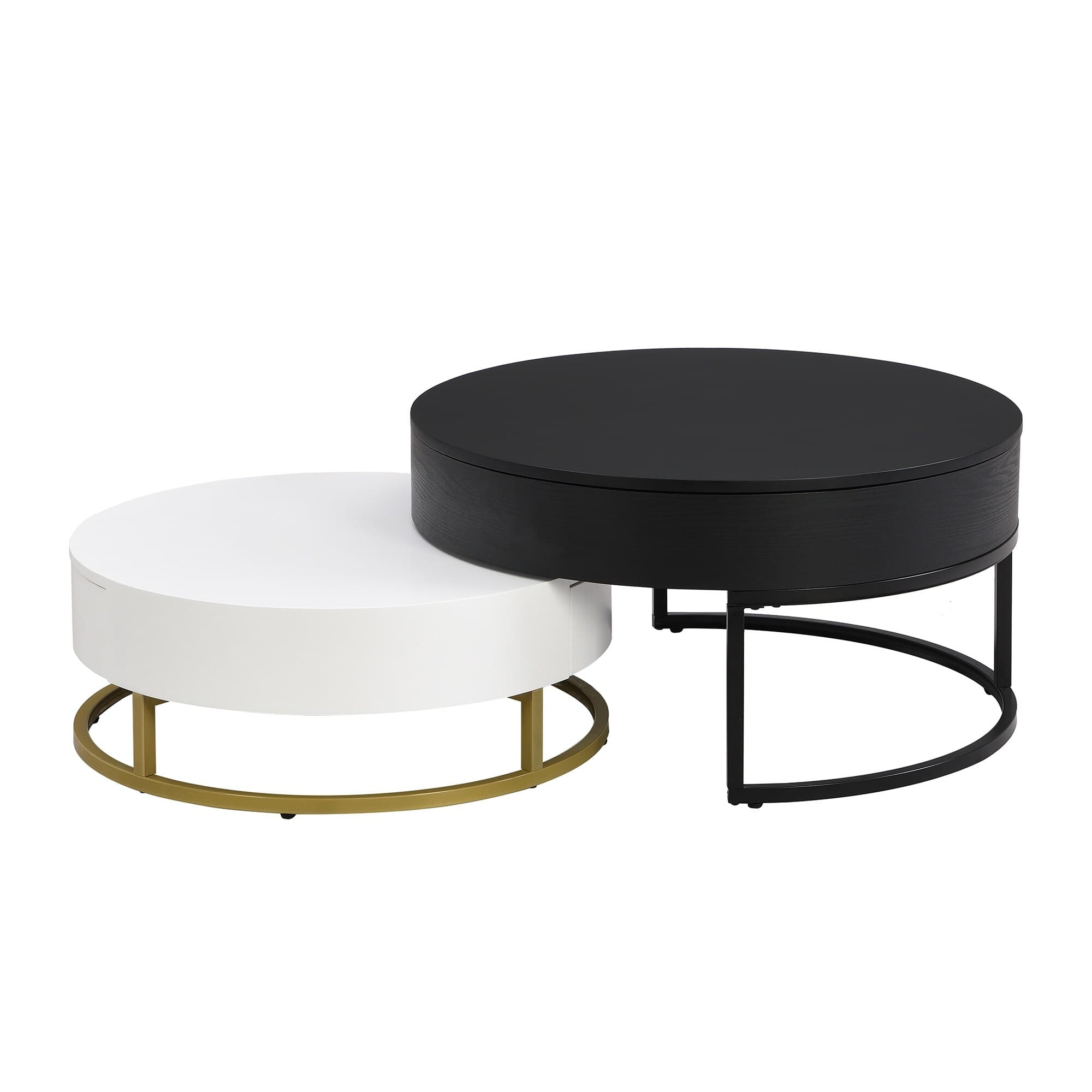 Round Lift-top Nesting Coffee Table Set of 2 with 2 Drawers